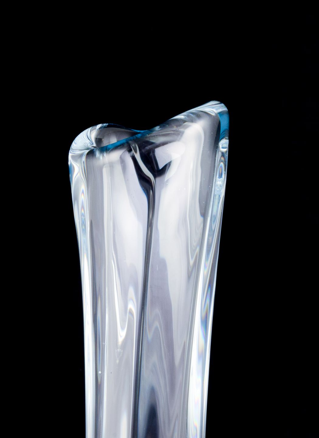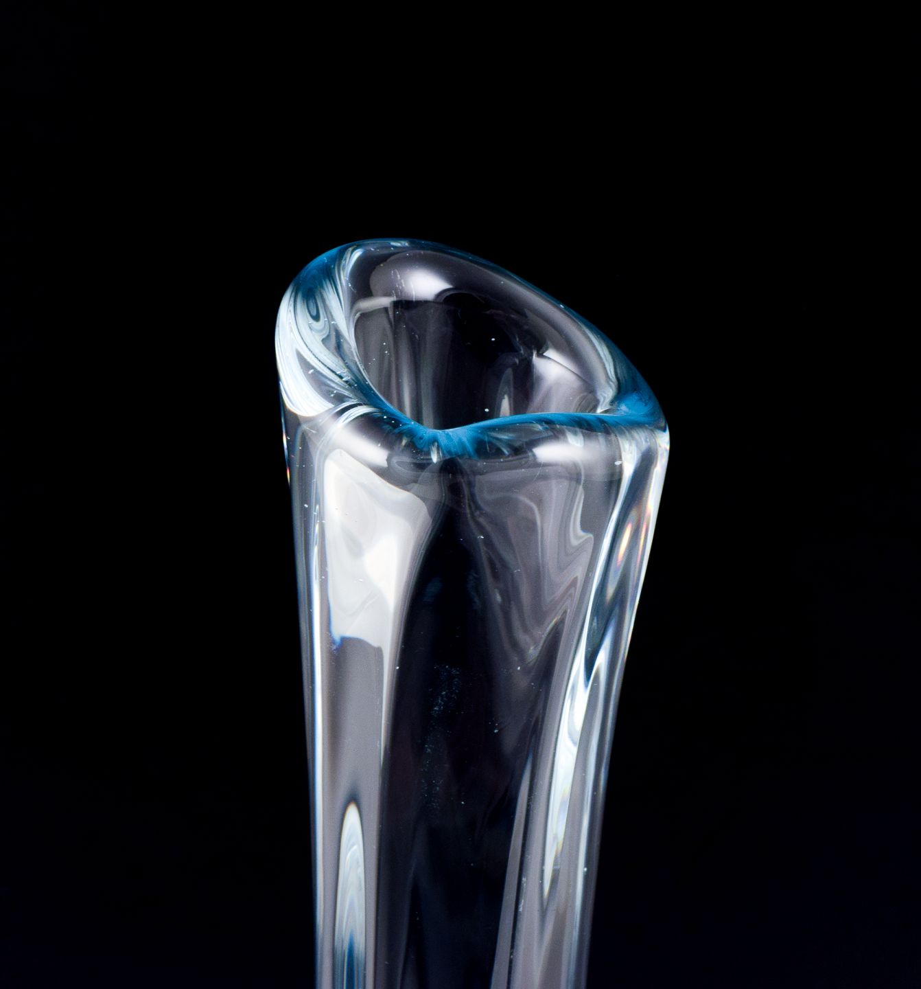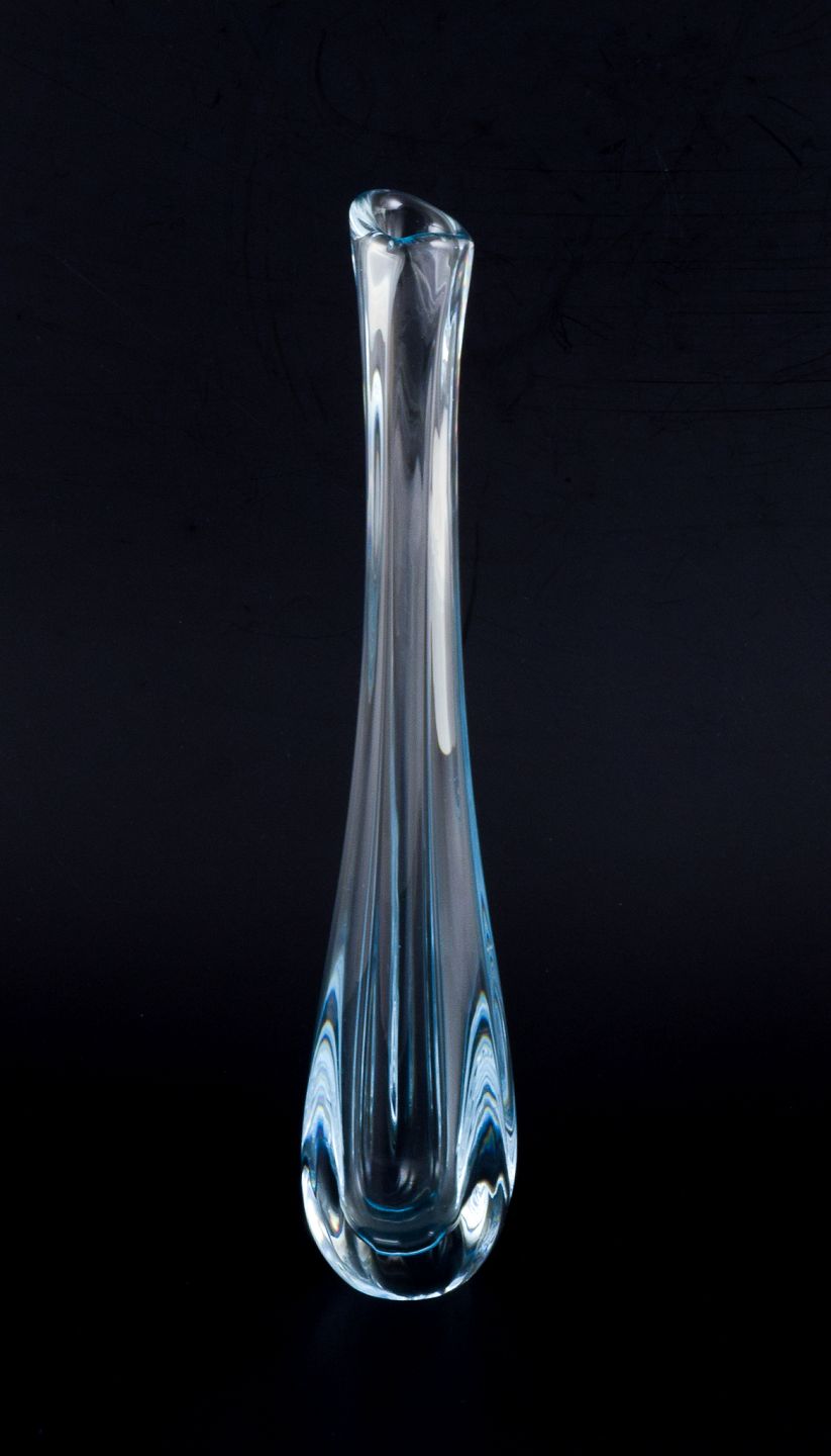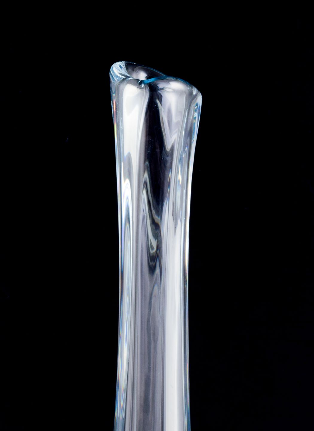 Nils Landberg for Orrefors, Sverige. Høj slank kunstglasvase i klart glas.