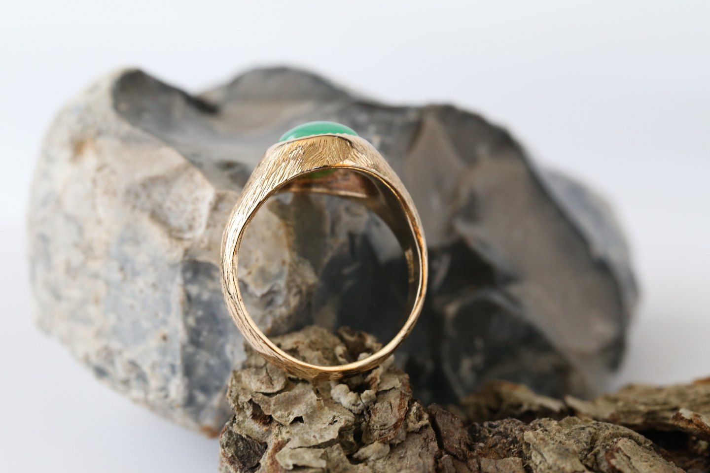 Elegant damering i 14 karat guld, med grøn sten, stemplet 585 NØK