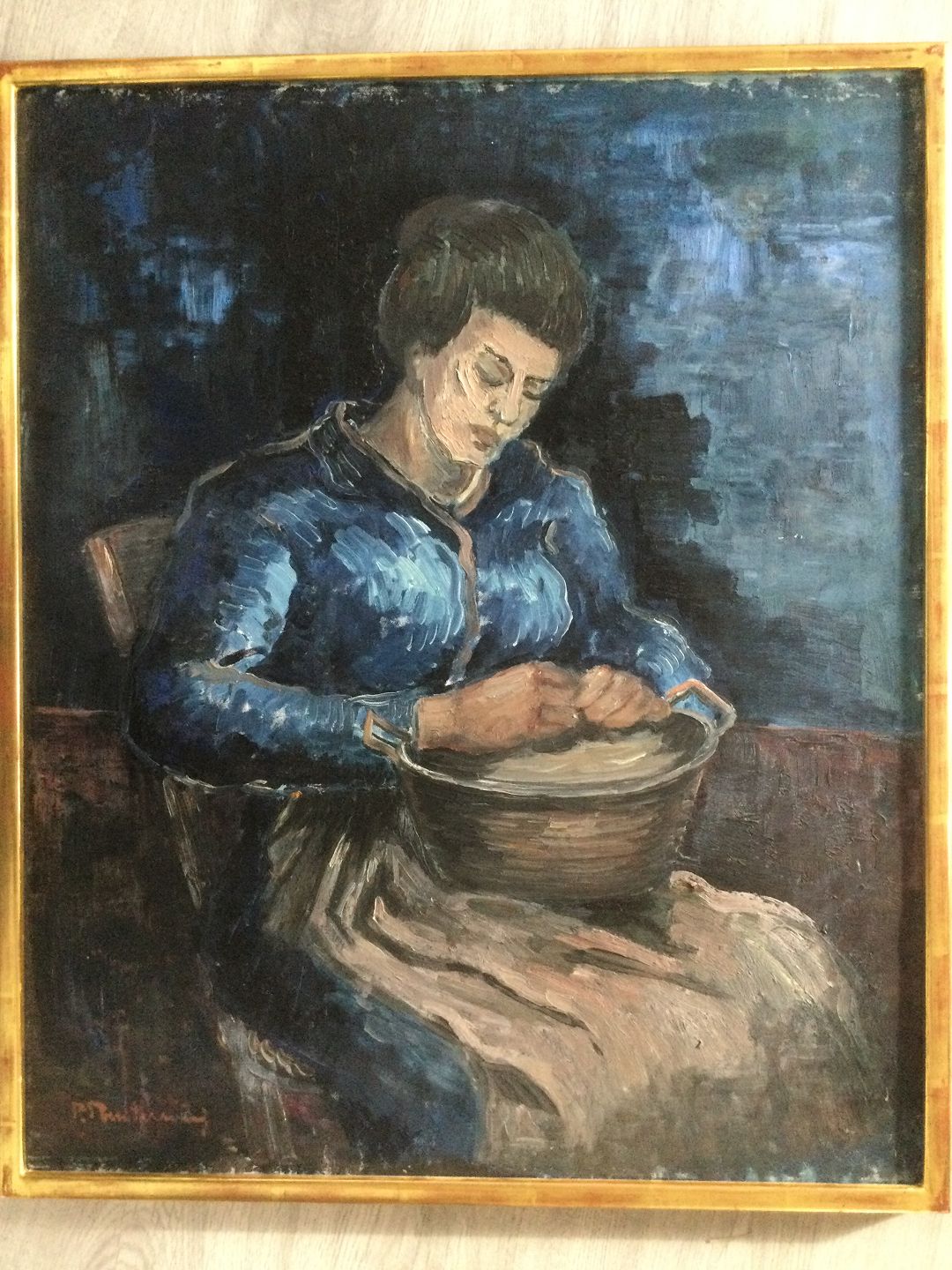Maleri af Patrik Reutersvärd - Kvinde der udfører husligt arbejde.