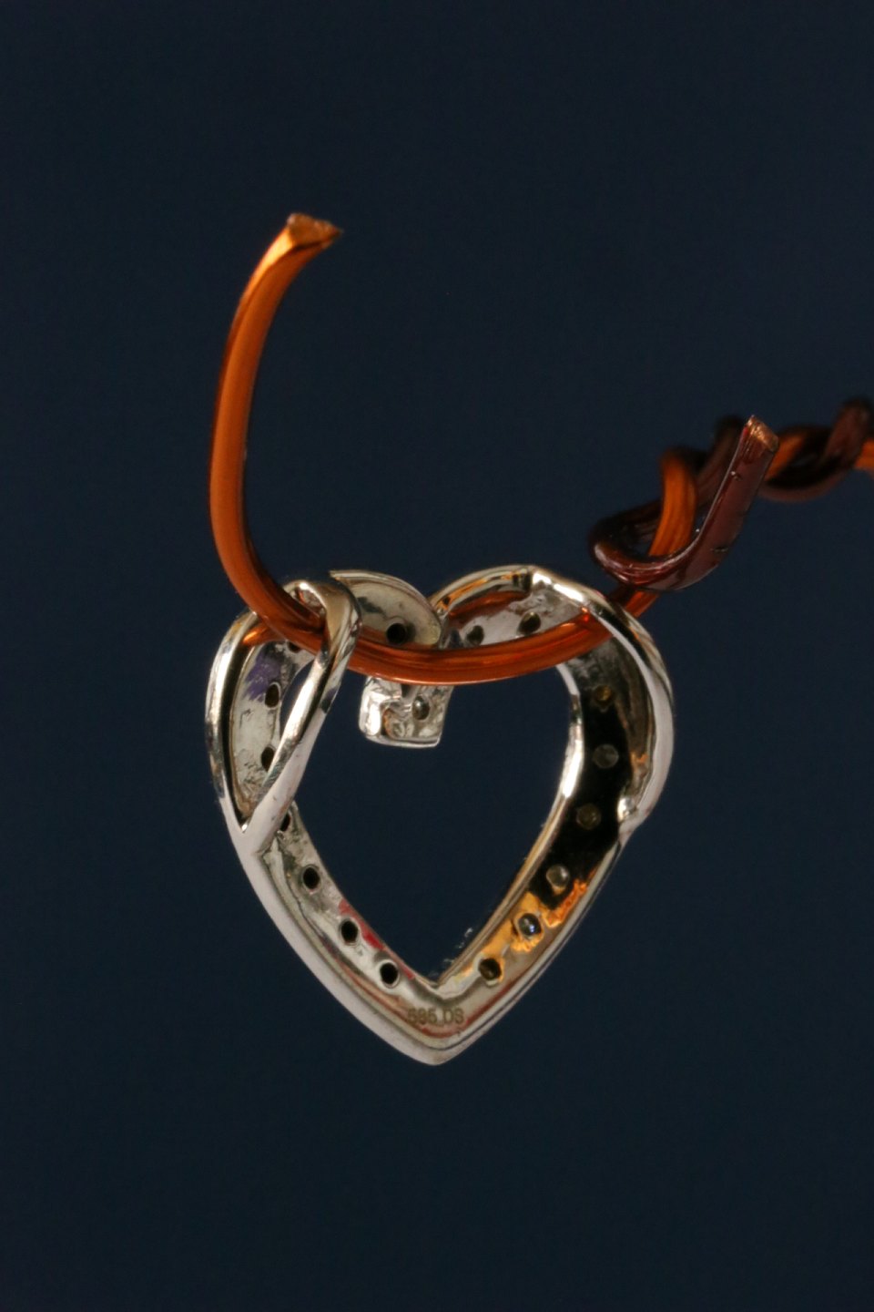 Vedhæng til kæde, hjerteformet i 14 k hvidguld, med brillanter.