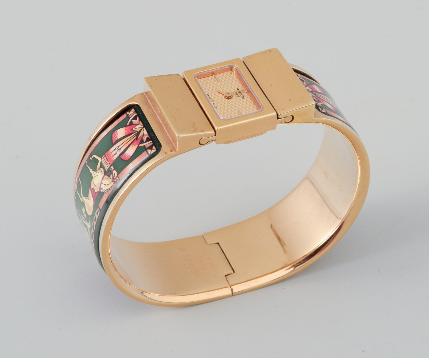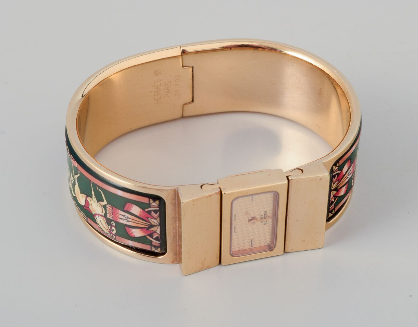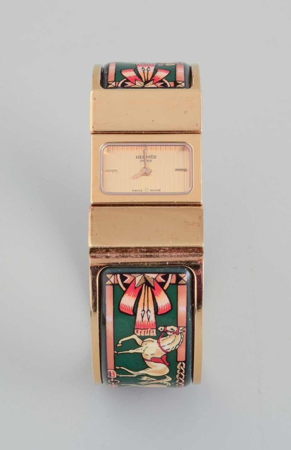 Text zugänglich auf Dänische: Hermes, damearmbåndsur i forgyldt metal og emaljearbejde.