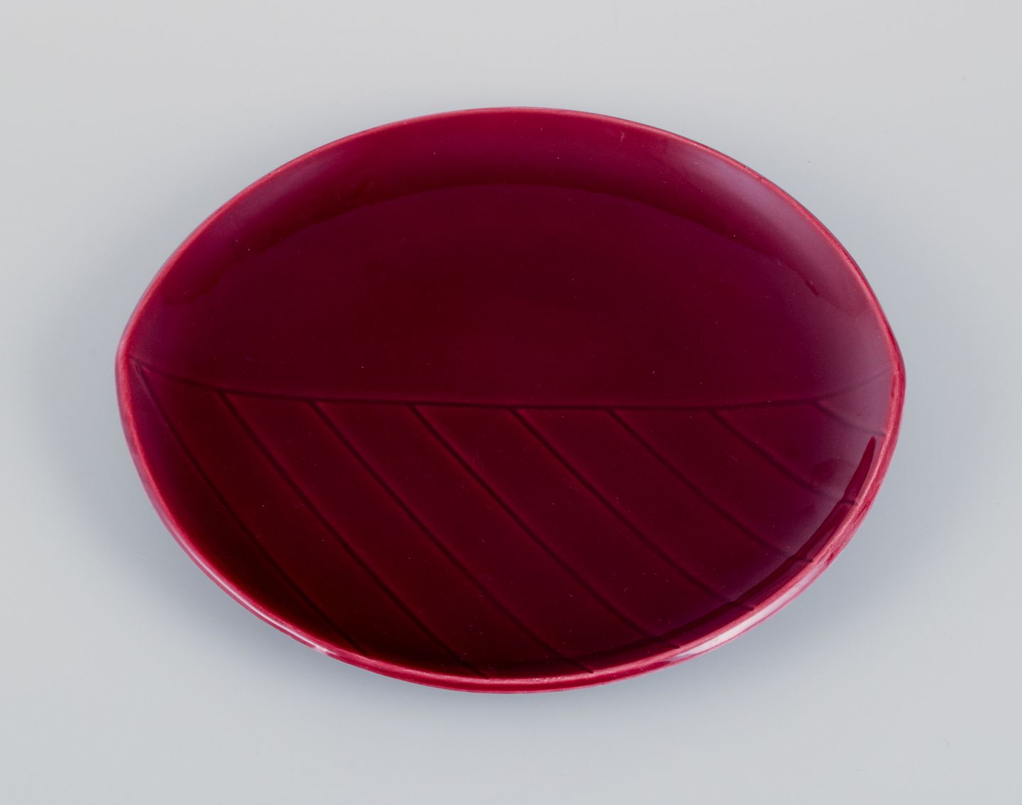 Carl Harry Stålhane (1920-1990) for Rörstrand. To kander og et fad i keramik. Bordeauxfarvet glasur.