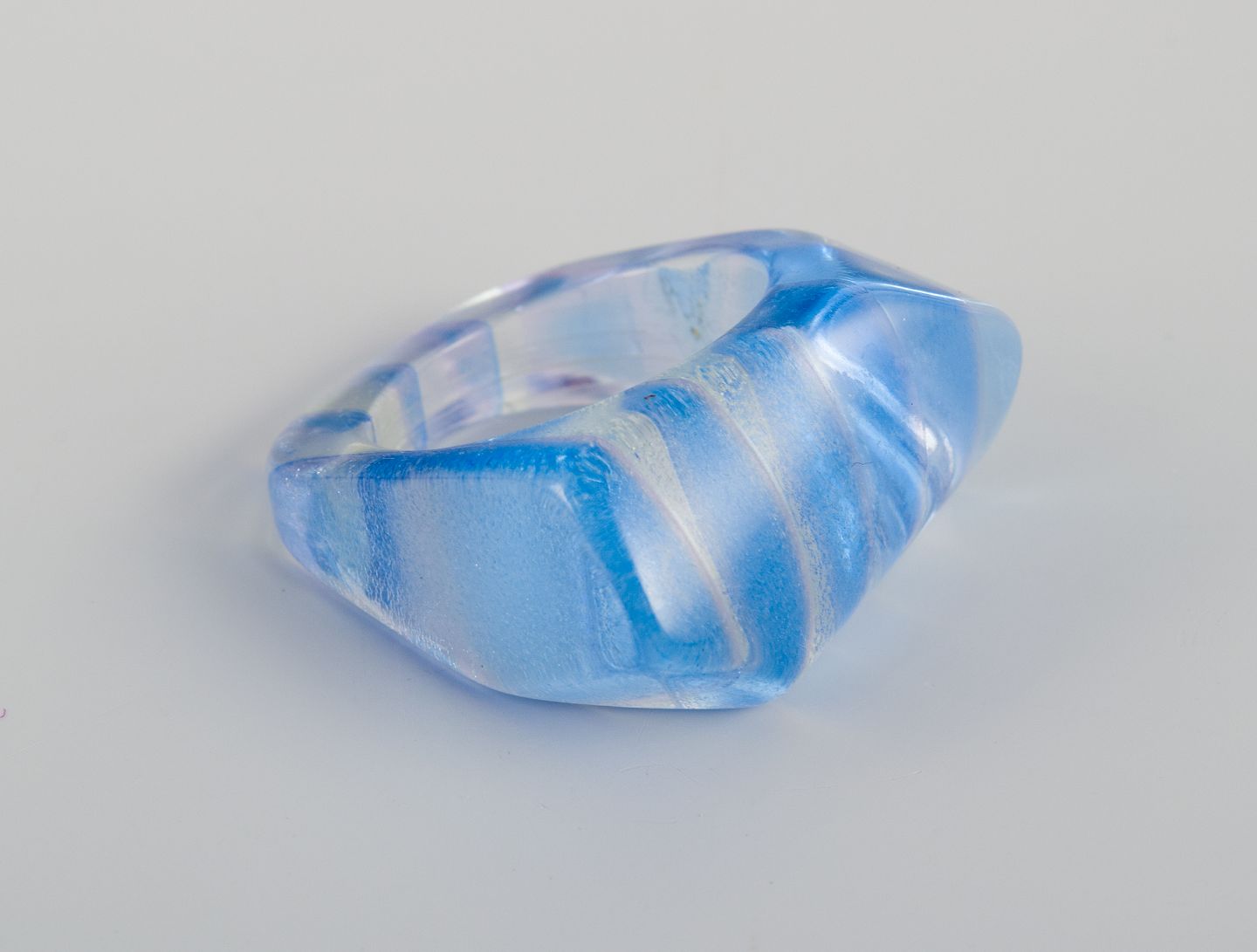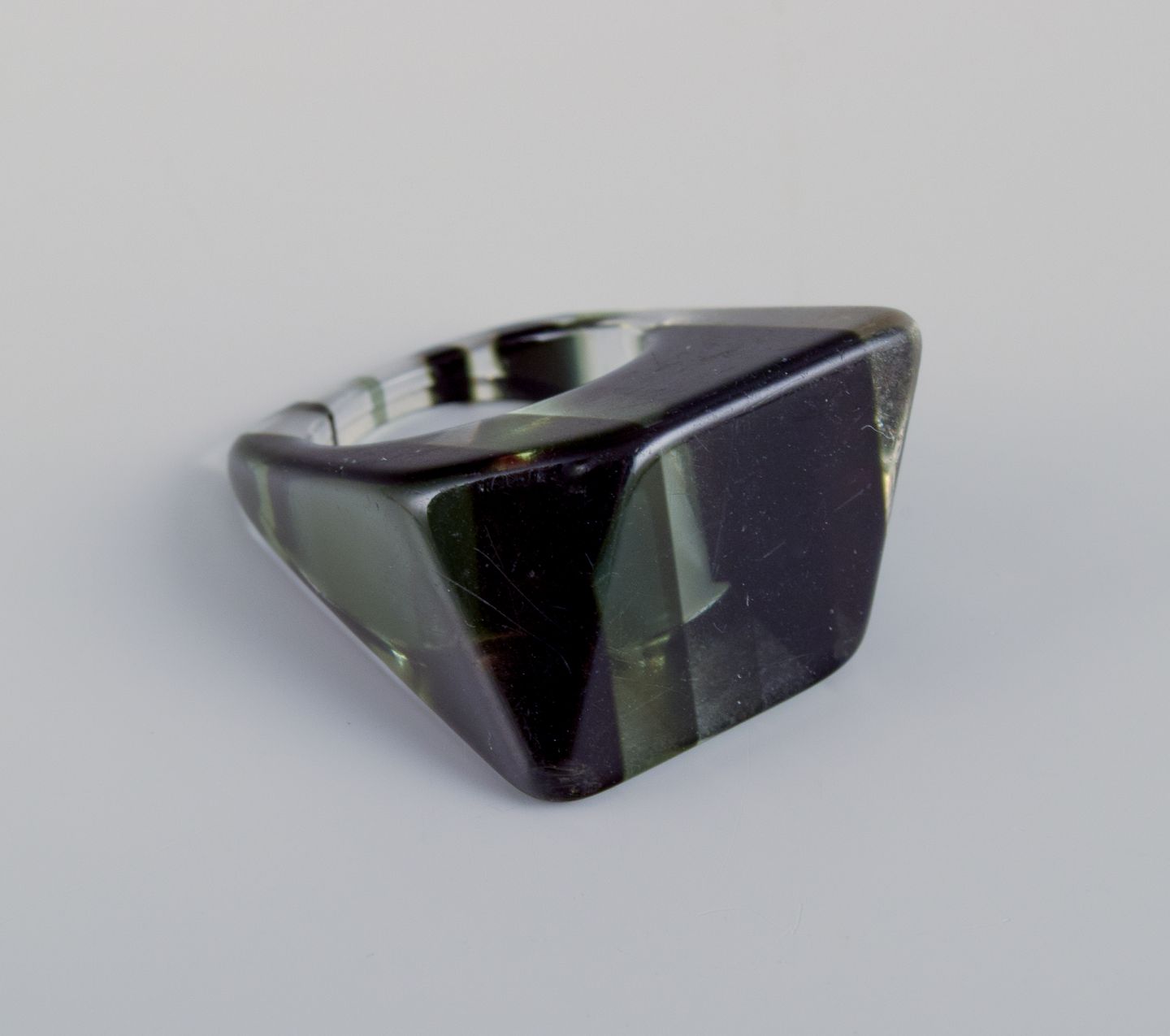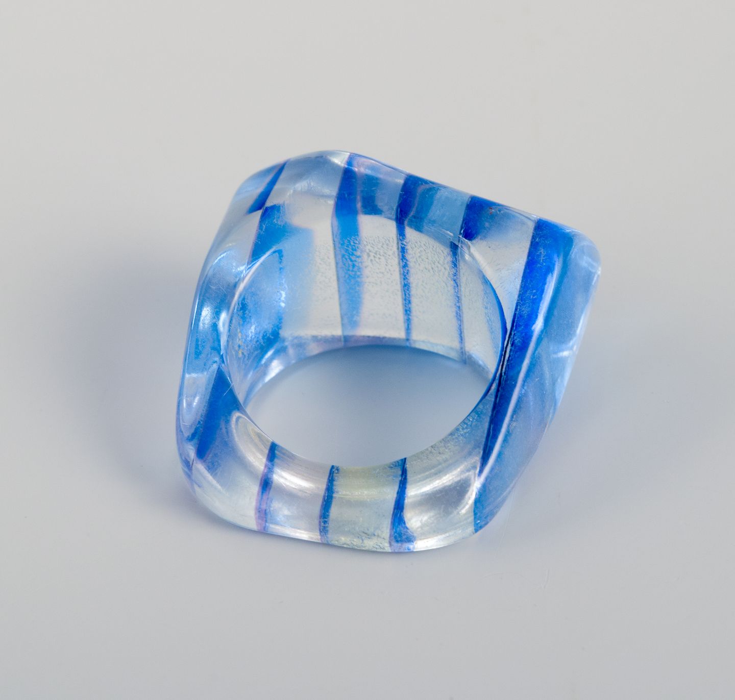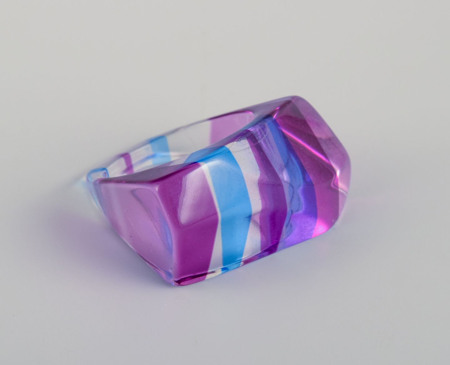 Fransk smykkekunstner. Fire designerringe i plast. Stribet design med forskellige farver.