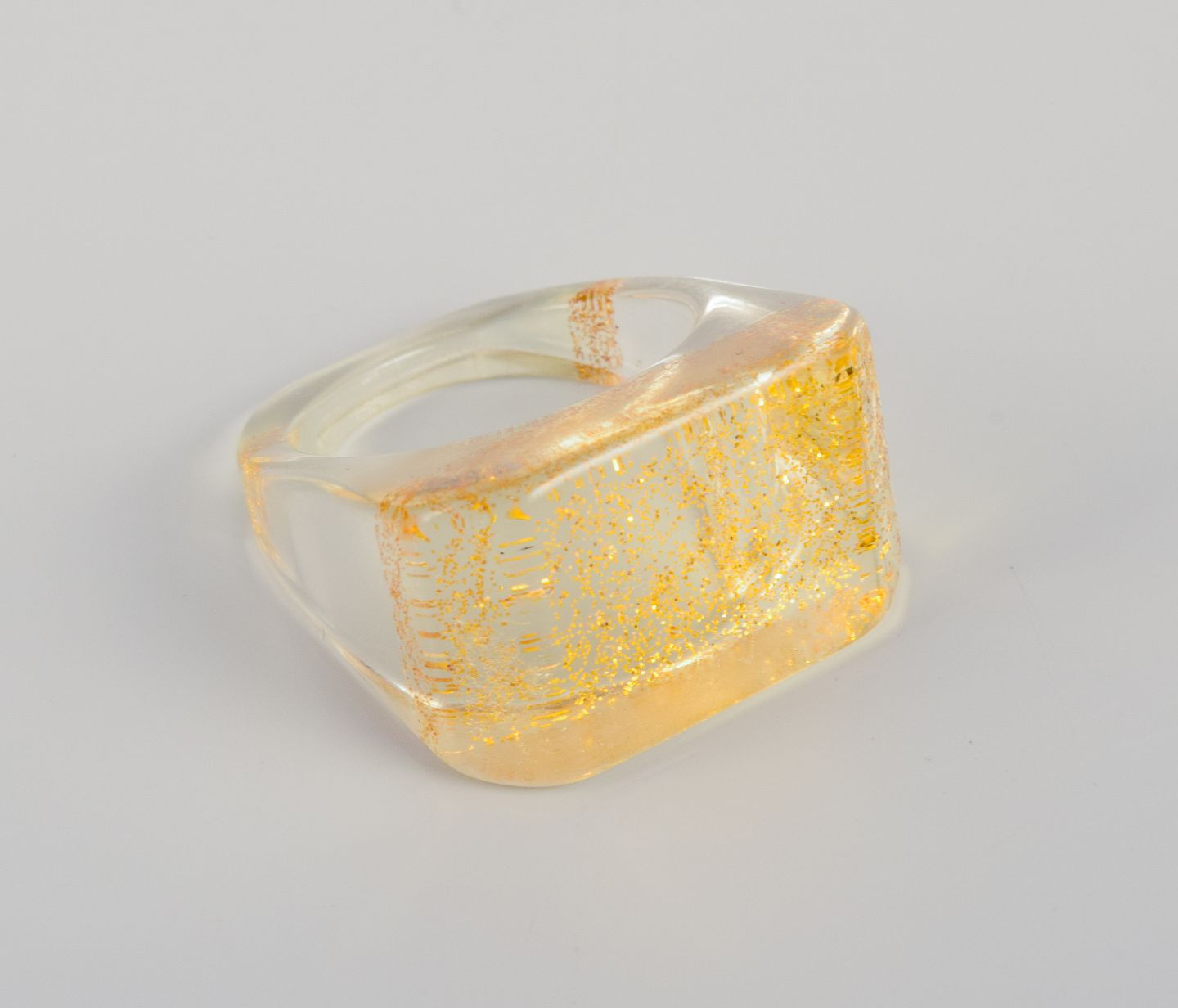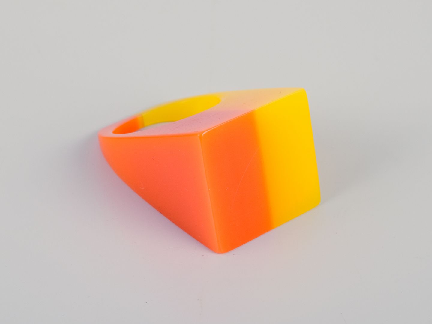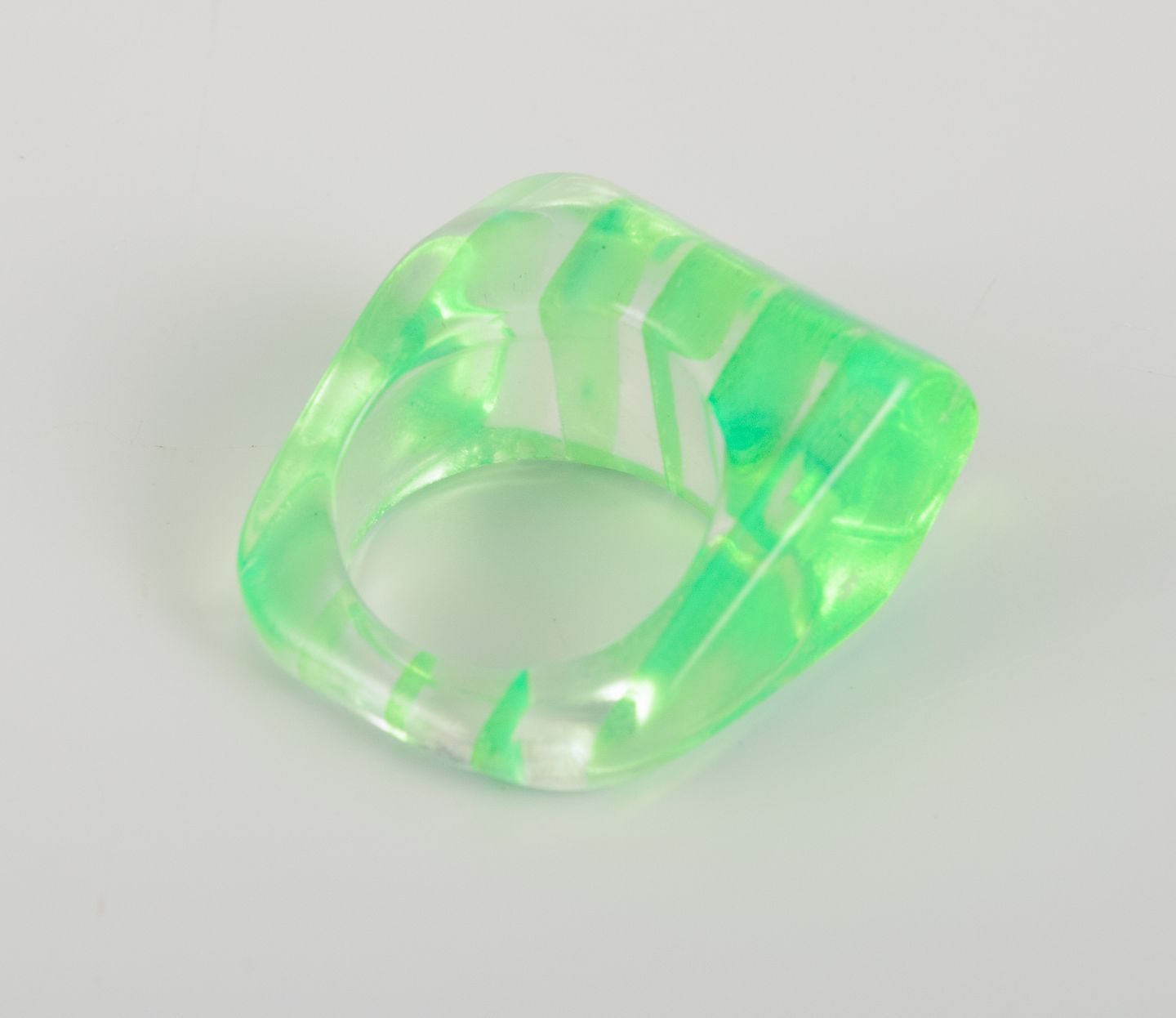 Fransk smykkekunstner. Fem designerringe i plast og metal.