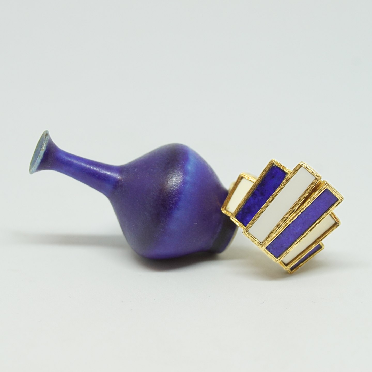 Julia Plana; Ring i 18 kt. guld, prydet med tre hvide koraller og tre Lapis Lazuli. Ring str. 53.