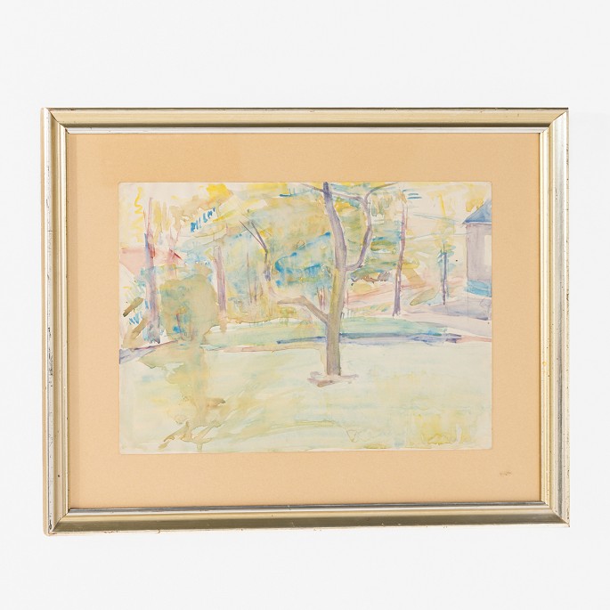 Akvarel af parti fra Kongens Have i København. Signeret.