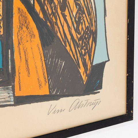 Litografi. Orange ansigt med sort ramme. 319/325. Signeret. Note på bagsiden.