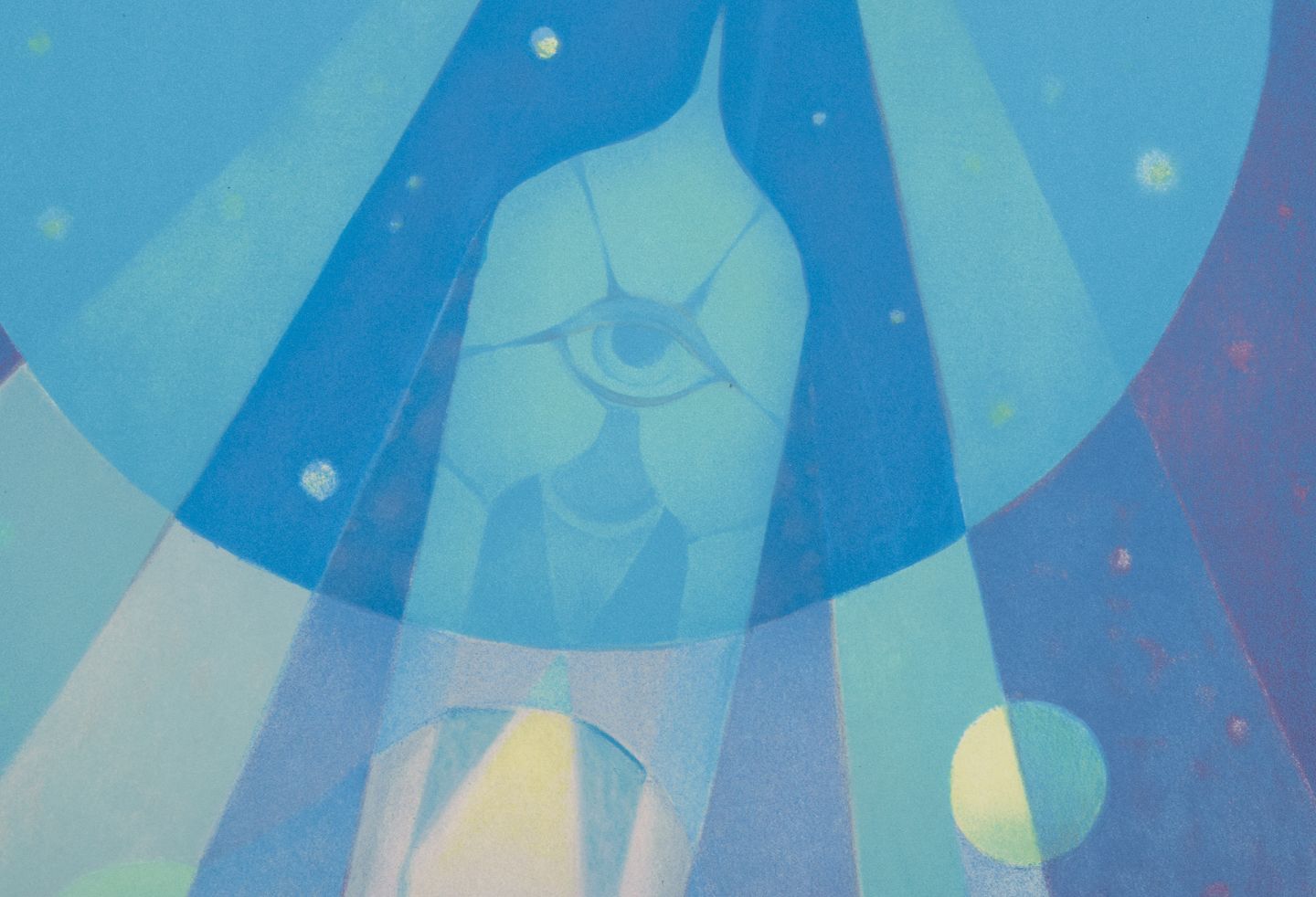Motiv af rumraket i kubistisk stil.