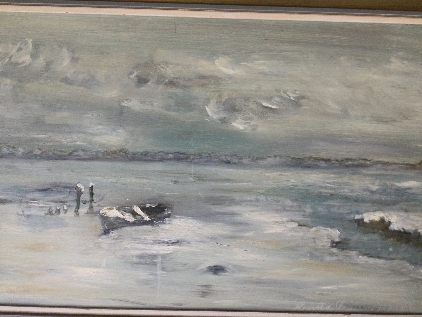 Maleri af Ninna Fruensgaard - Kystparti fra Vestkysten, vinter 1967.