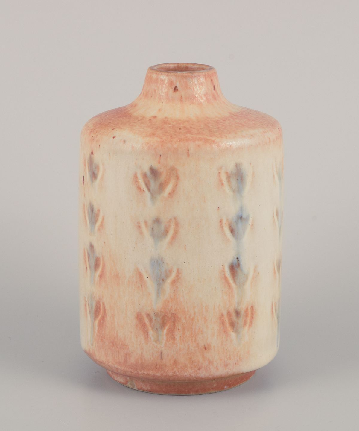 Peder Hald (1892-1987), dansk keramiker. Unika keramik vase med glasur i lyse toner. Håndglaseret.