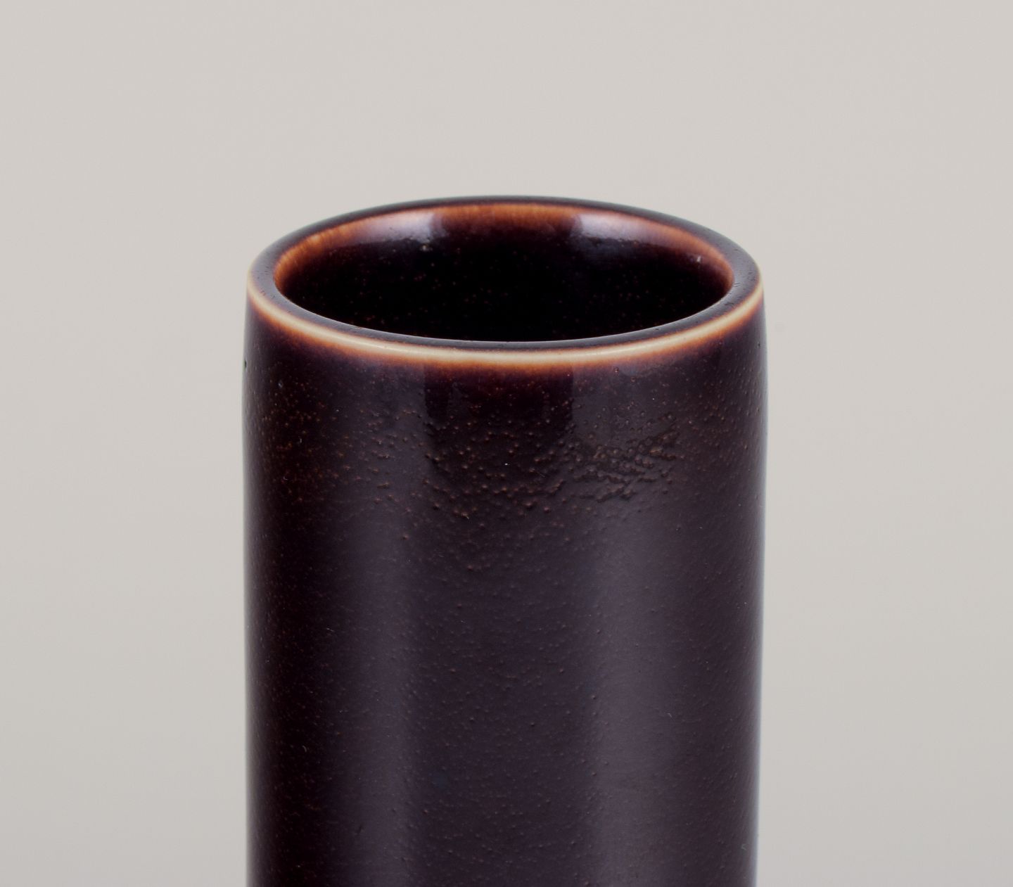 Hertha Bengtson for Rörstrand, Sverige. Unika keramikvase. Cylinderformet. Glasur i brune nuancer.