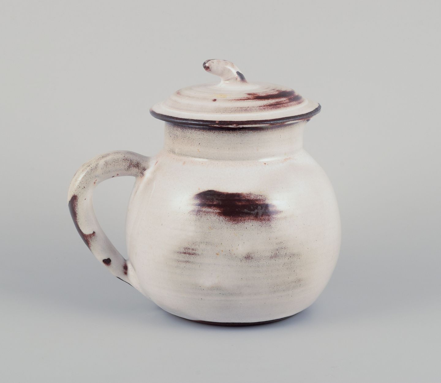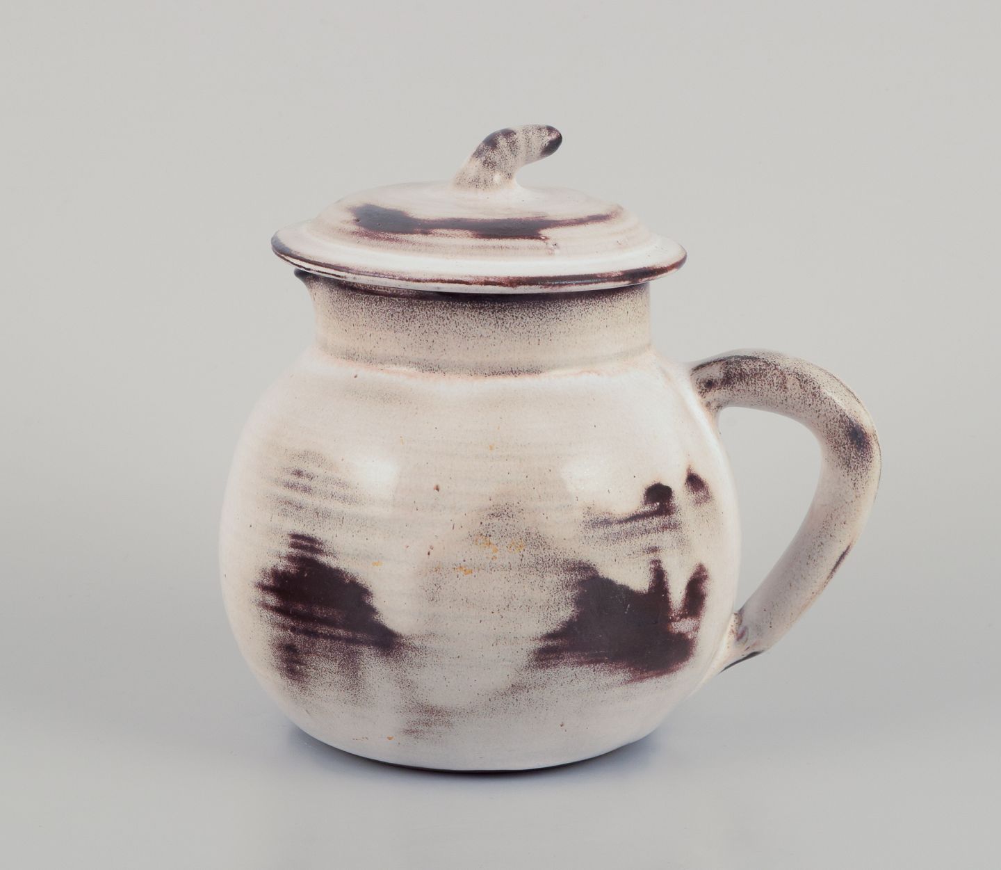 Gerard Hofmann (1917-1965), fransk keramiker, eget værksted. Stor tekande i unika keramik. Glasur i jordfarver. Håndlavet.