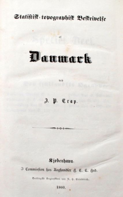 Trap Danmark. Statestistisk, topografisk beskrivelse. Udgivet af Trap, København, 1860. 1. udgave.