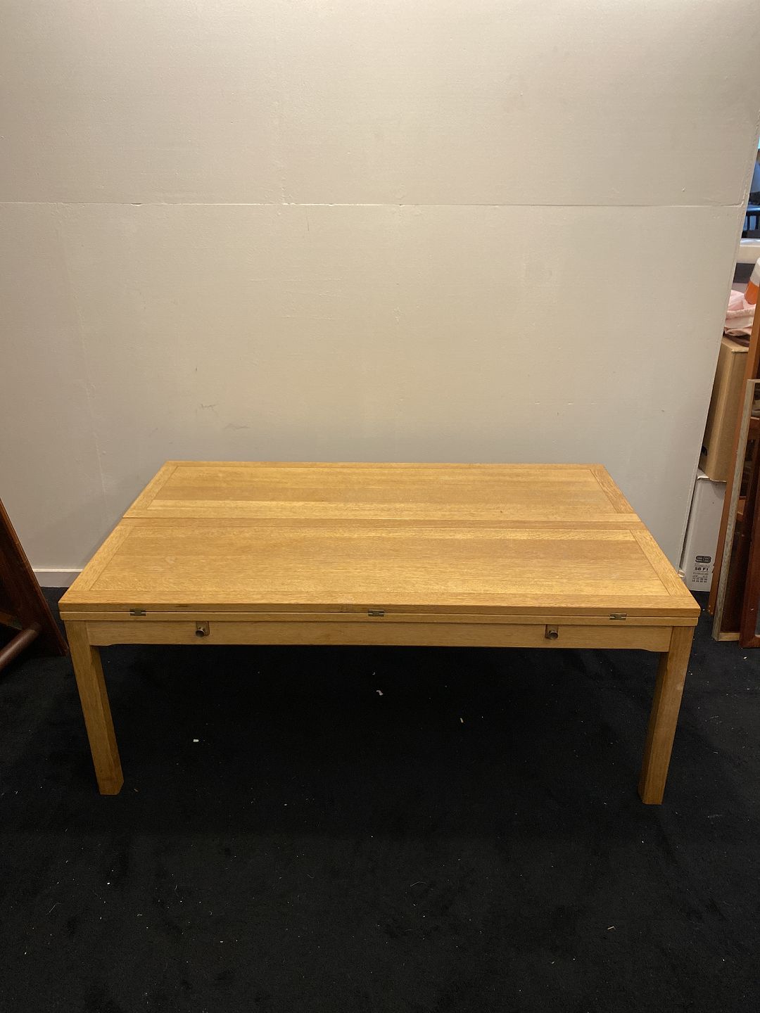 Sofabord i eg med klapper. Fremstår ok pænt og velholdt uden de store brugsspor.