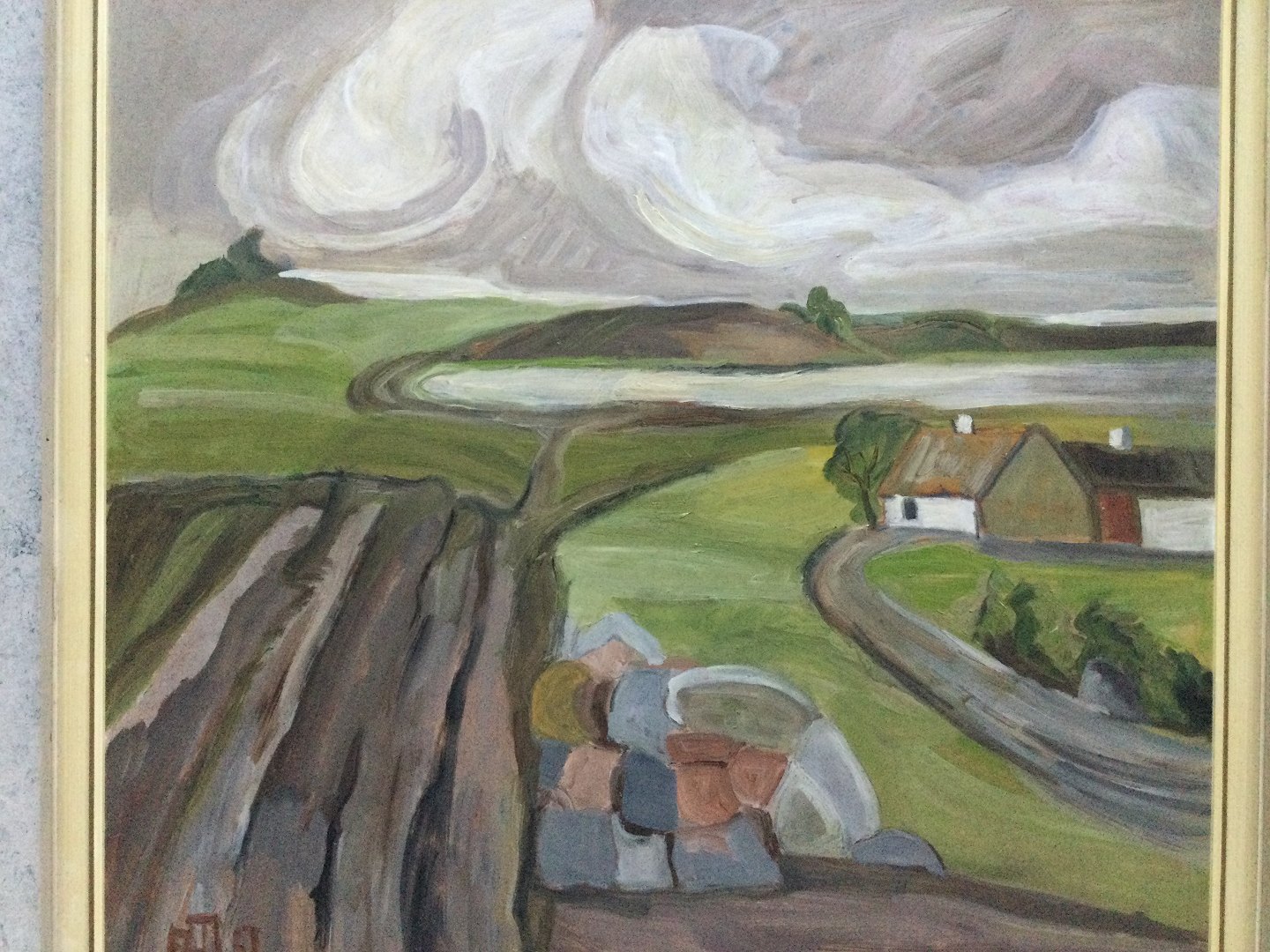 Maleri af Eline Hertz-Jespersen - Landskab med nypløjede marker 1957.