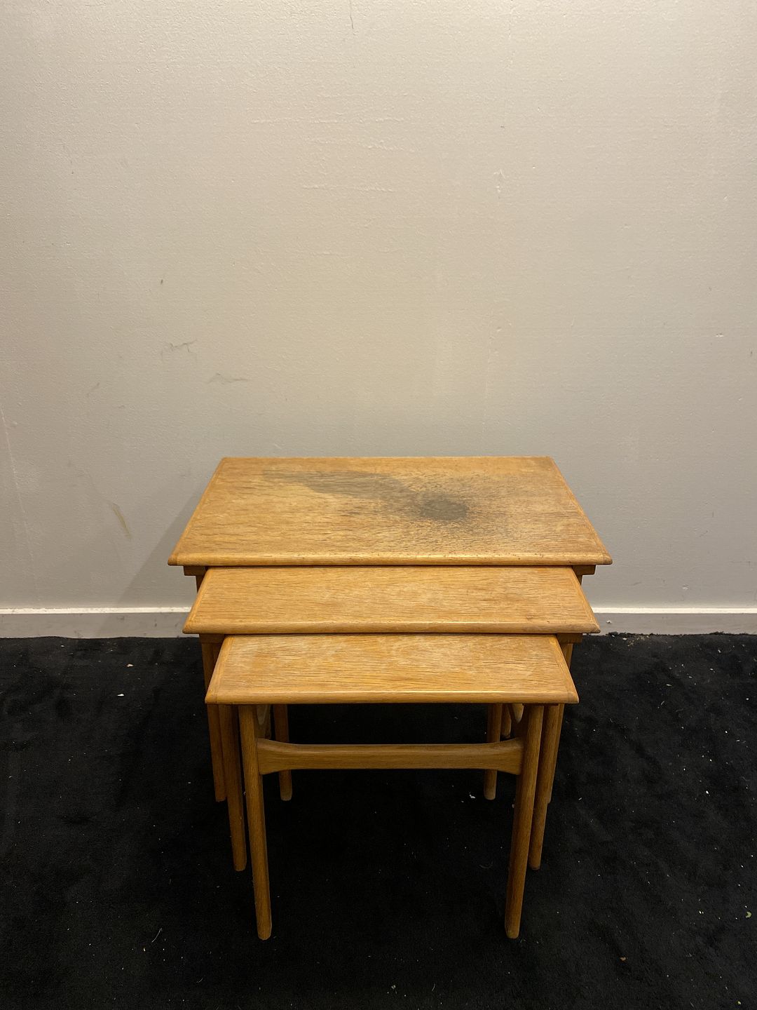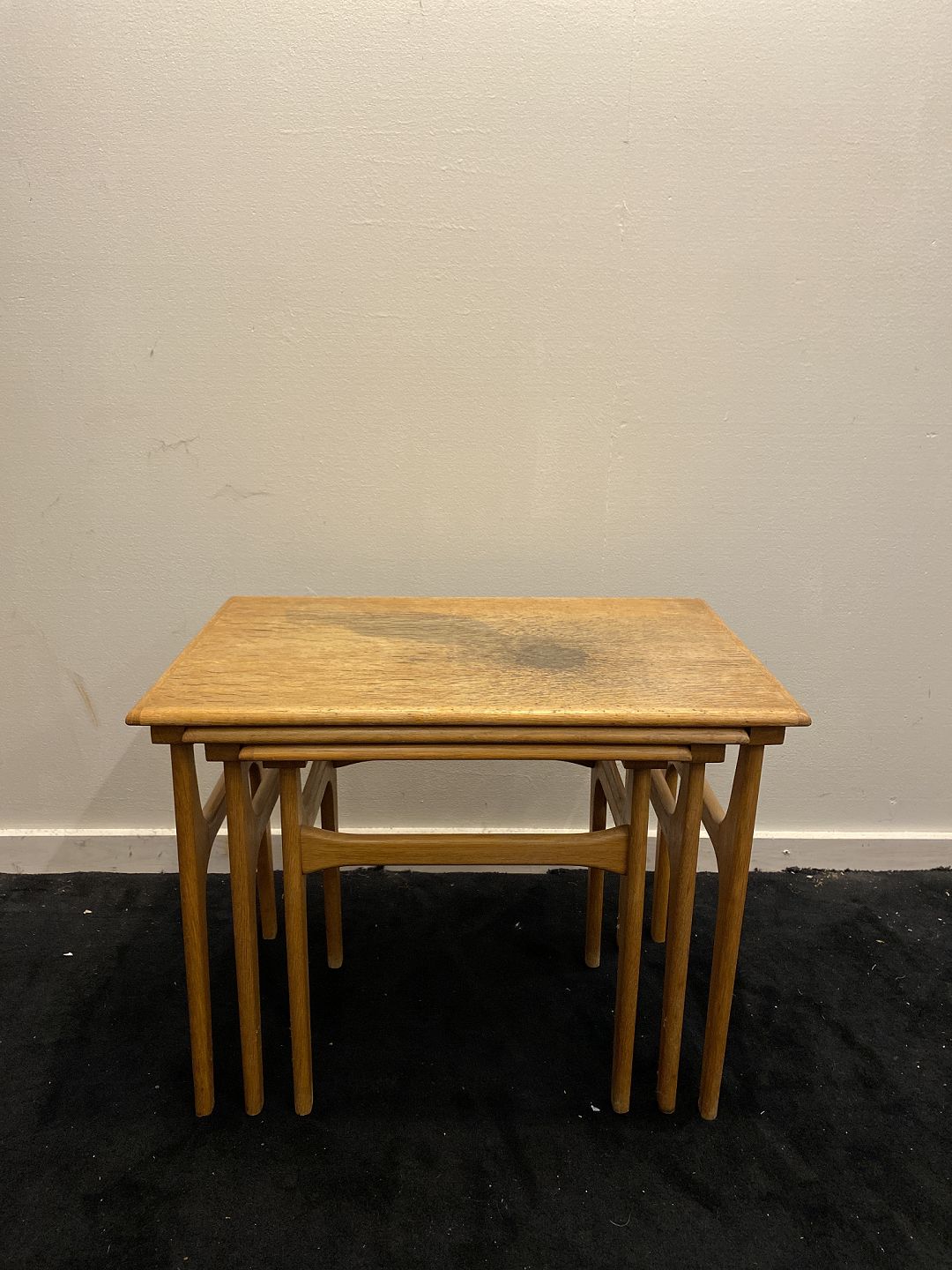 Indskudsborde fra 1960´erne i eg. Fremstår udmærket stabile dog med brugsspor på pladerne især det største. (billeder)