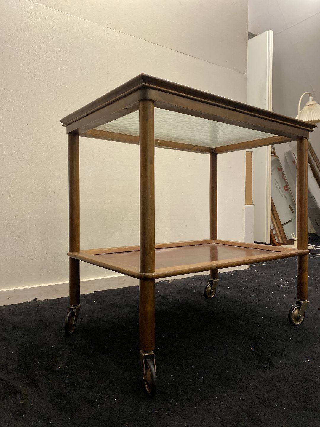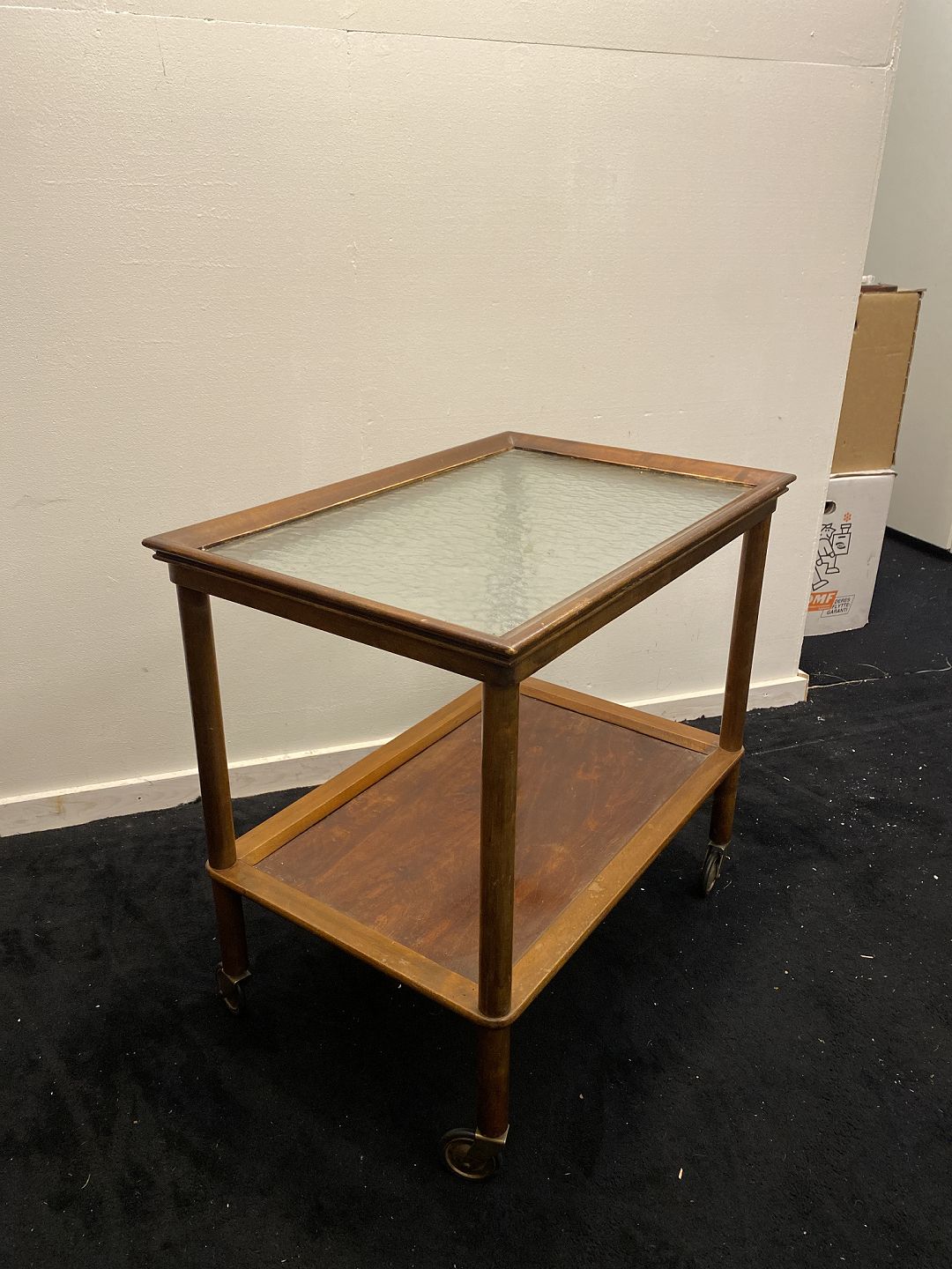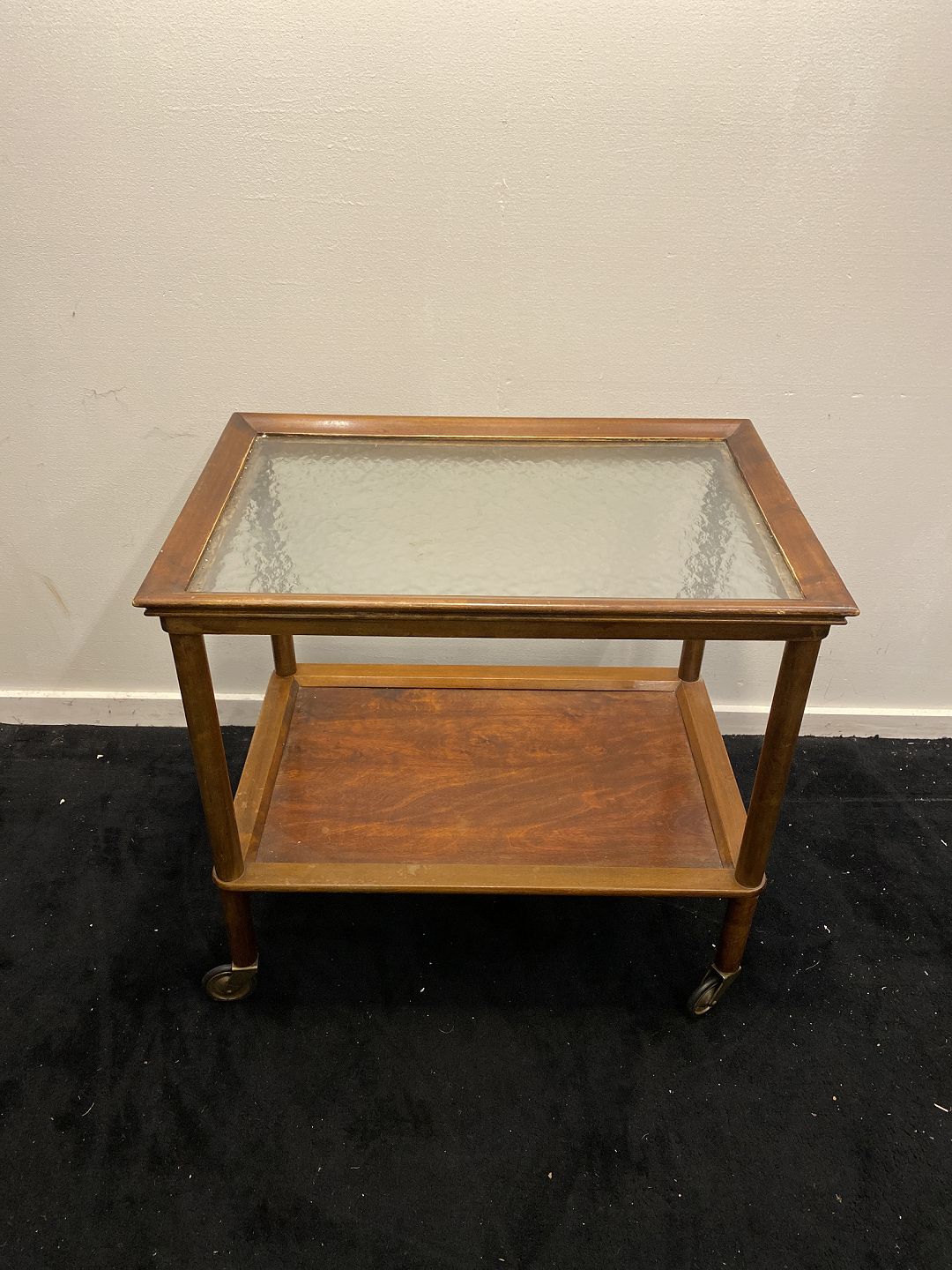 Rullebord fra 1960´erne med matteret glasplade. Fremstår pænt og ok funktionelt uden de store brugsspor.