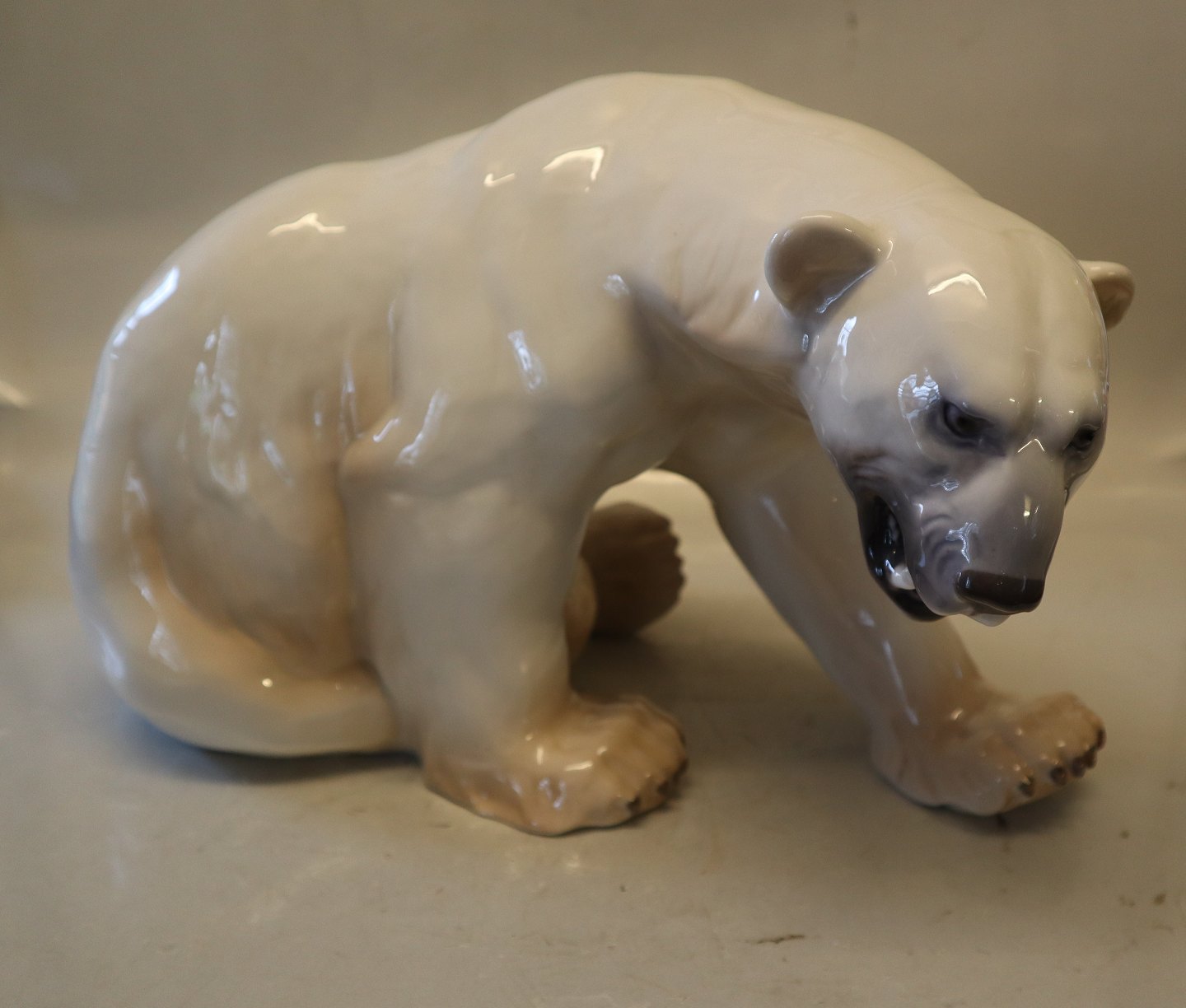 Bing & Grøndahl B&G 1857 Isbjørn, Stor Knud Kyhn Højde 21,5 cm x længde 37 cm (RC 0433) I fin og hel stand Royal Copenhagen