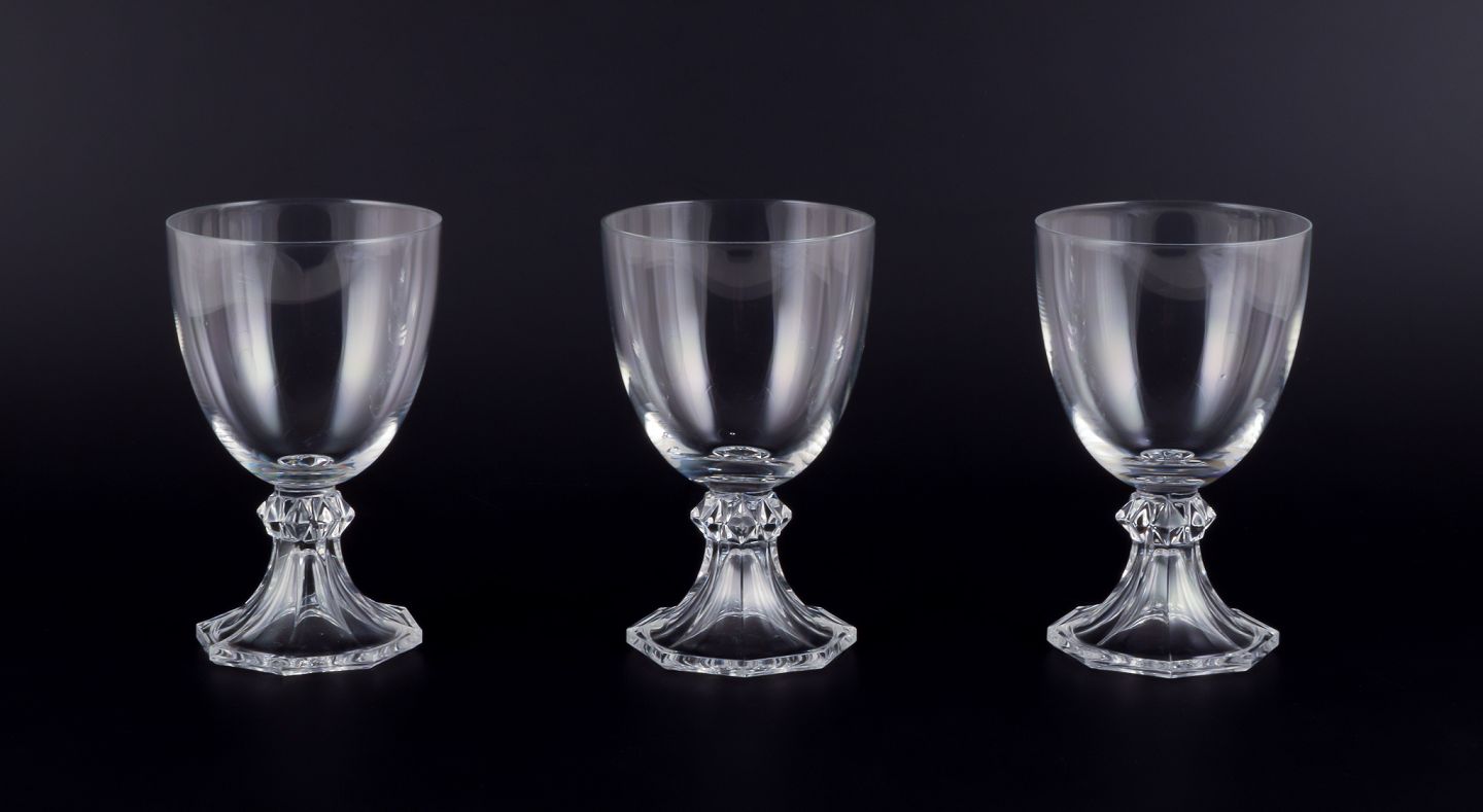 Val St. Lambert, Belgien. Et sæt på tre rødvinsglas i mundblæst krystalglas.