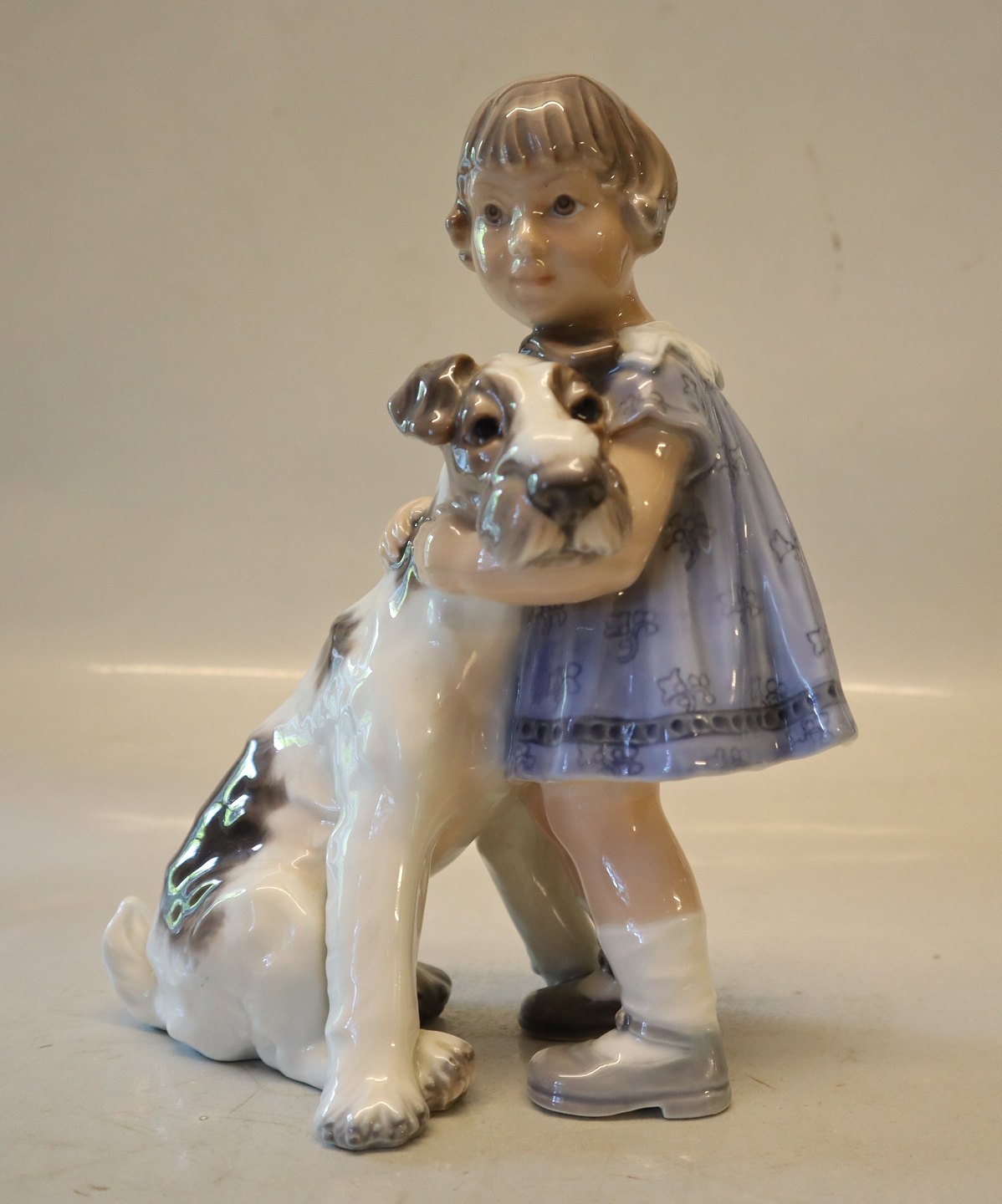Dahl Jensen pige med fox terrier 1085. Figuren til salg er billede to og efterfølgende. DJ Copenhagen i hel og fin stand. Hundefigur