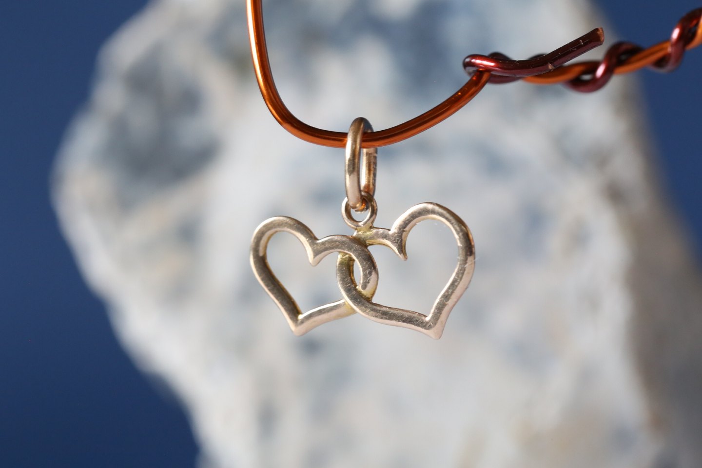Dette smukke vedhæng af dobbelthjerte, er både romantisk og smukt. De bløde simple linjer, gør vedhænget til et simpelt smykke, men dog samtidig meget udtryksfuldt.