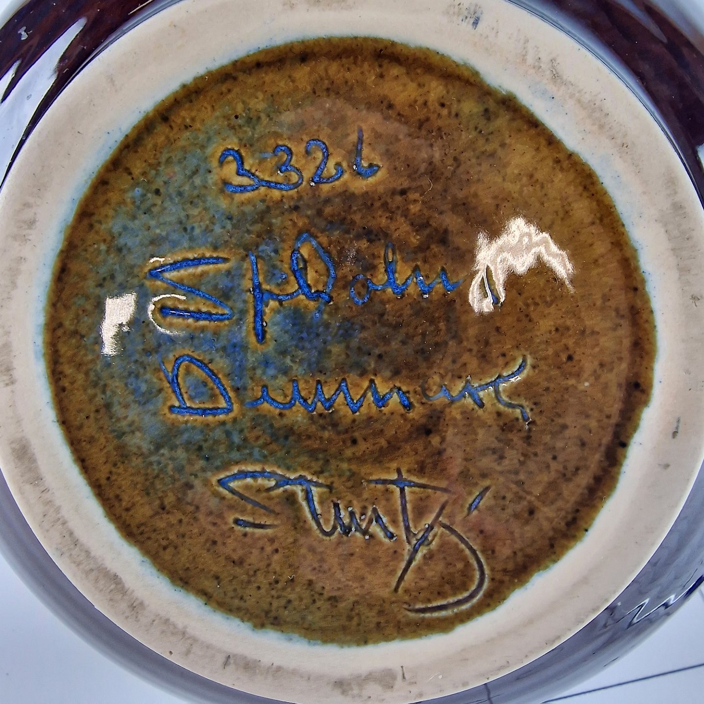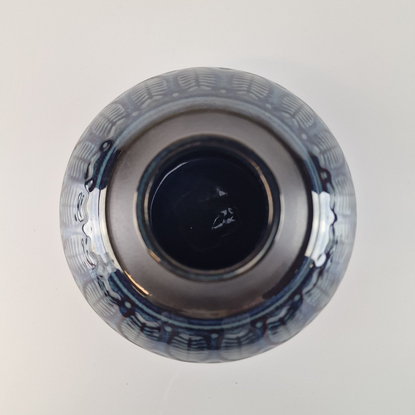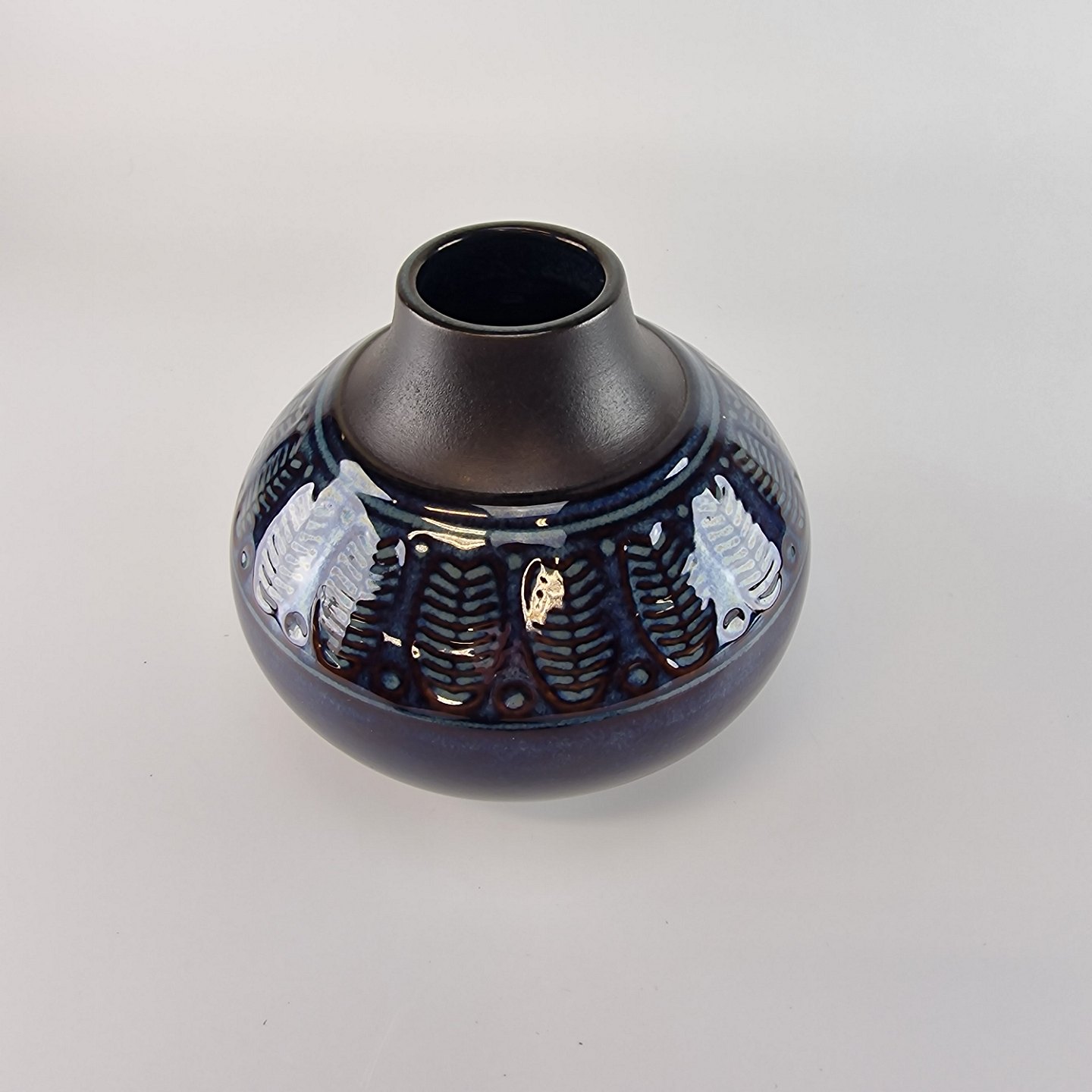 Vase med relief dekoration og blå og sort glasur på stentøj. No 3326