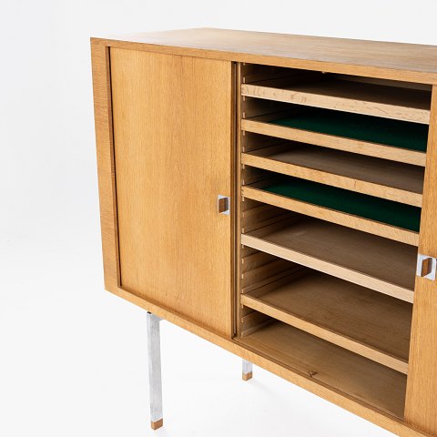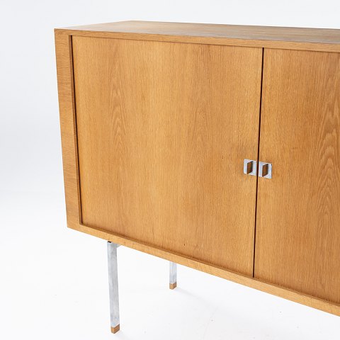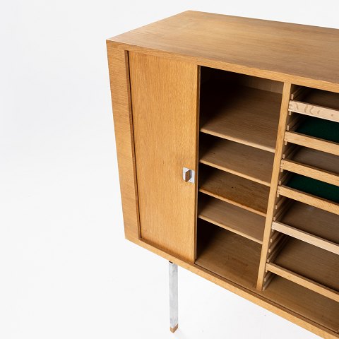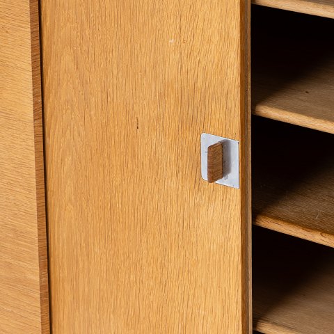 RY 25 - Høj skænk i patineret eg med jalousidøre og. beaf metal med fødder i eg.