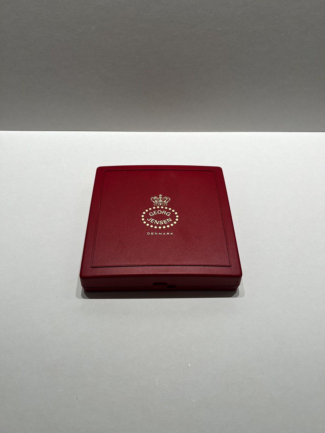 Georg Jensen's Christmas Mobile from 1992 is entitled "Sparrow Hide" and is a beautiful piece designed by Jette Frölich. The clock is made of gilded brass and measures 9 cm in height.