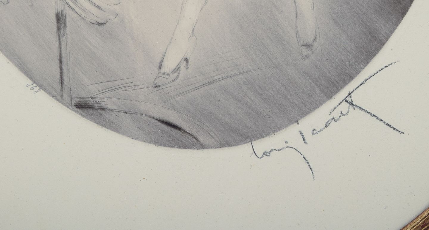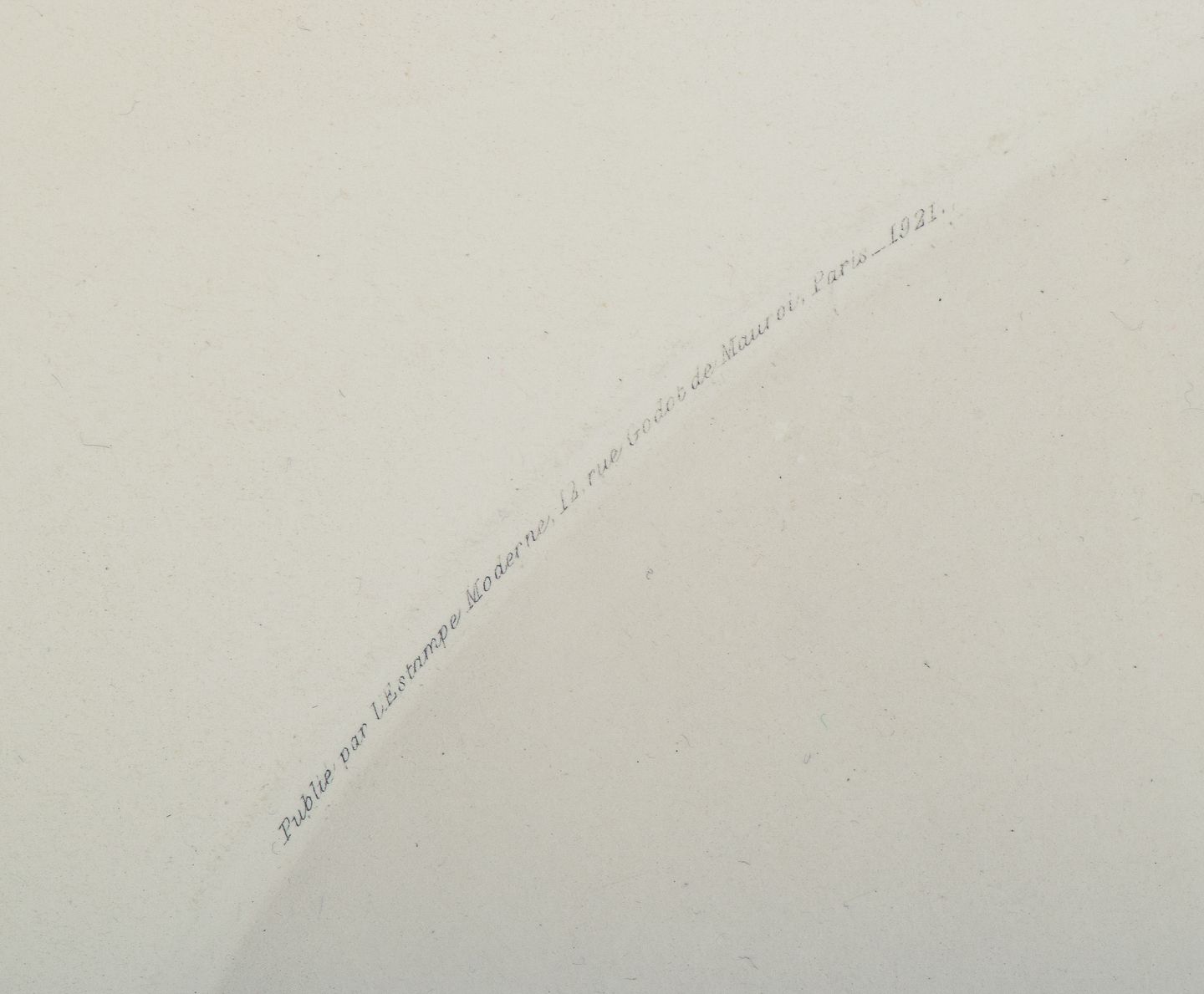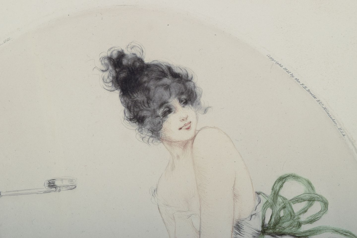 Louis Icart (1888-1950). Radering på papir. Letpåklædt kvinde og kakadue.