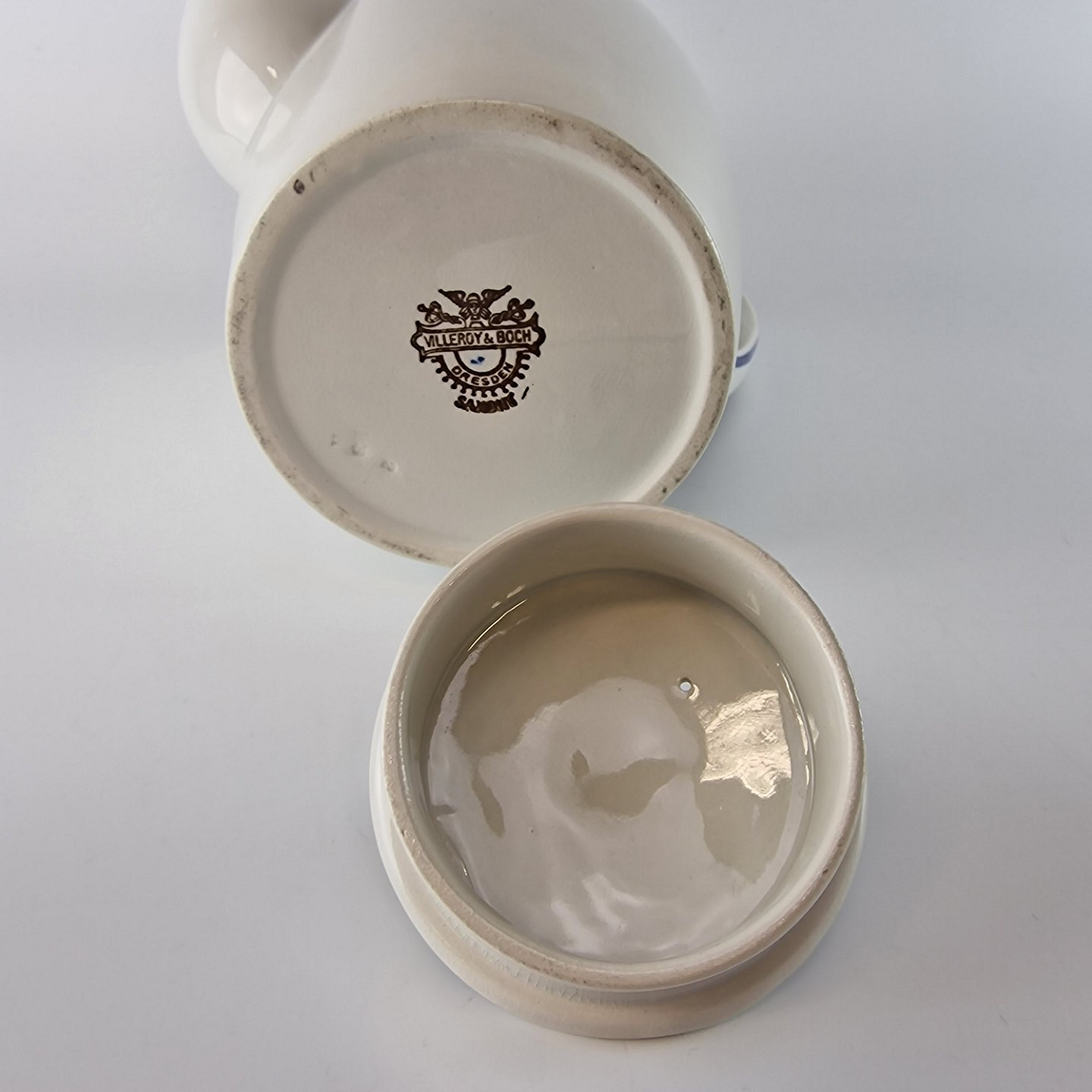 Kaffekande med låg fra stellet Blå Olga, sjælden at finde i så fin stand, meget lidt misfarvning ved tud.