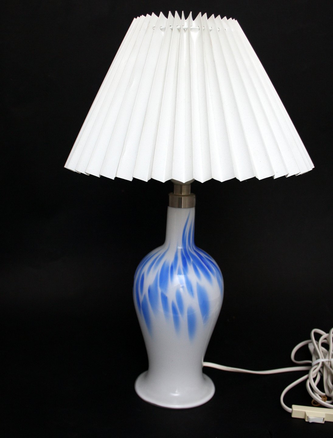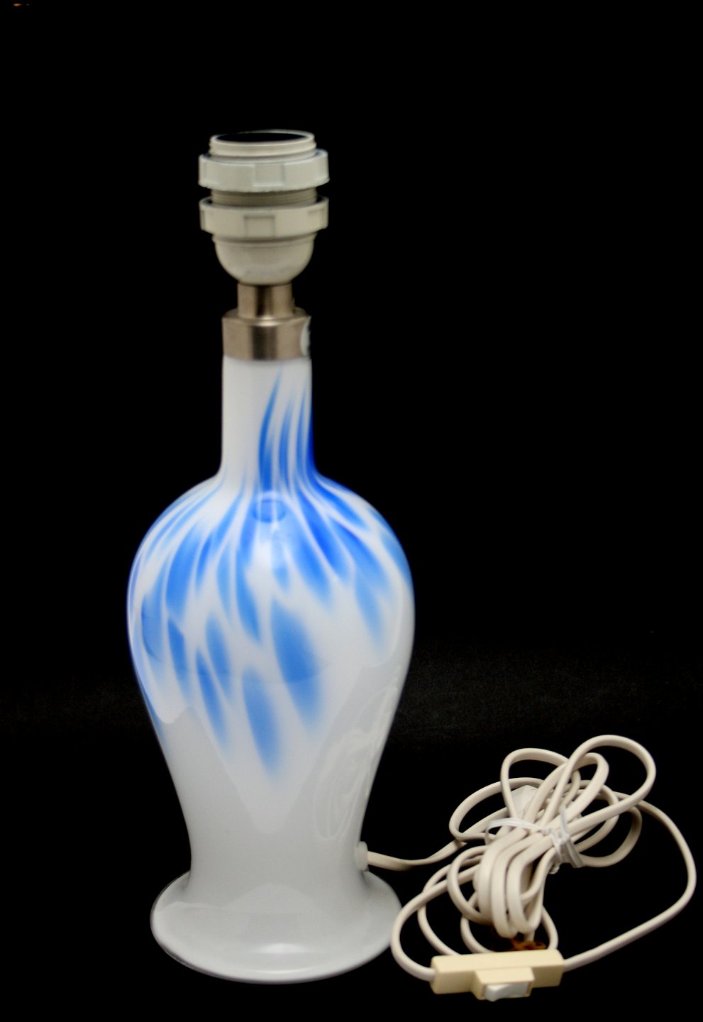 Holmegaard/Royal Copenhagen, Torino opal bordlampe mellem model med blå overfang dekoration. Designet af Michael Bang i 1990. Højde 33 cm.