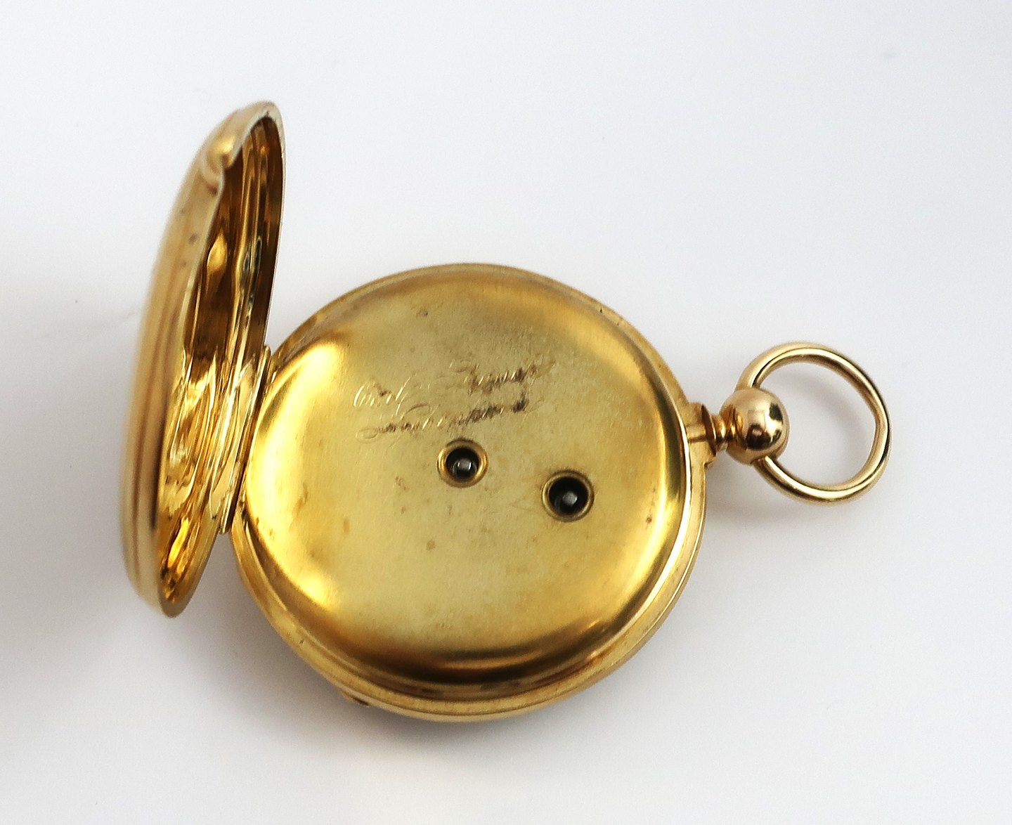 Carl Ranch, København. Guld lommeur 18K (750). Diameter 51 mm. Urværk virker. I original æske. Hårrevne i urskiven.