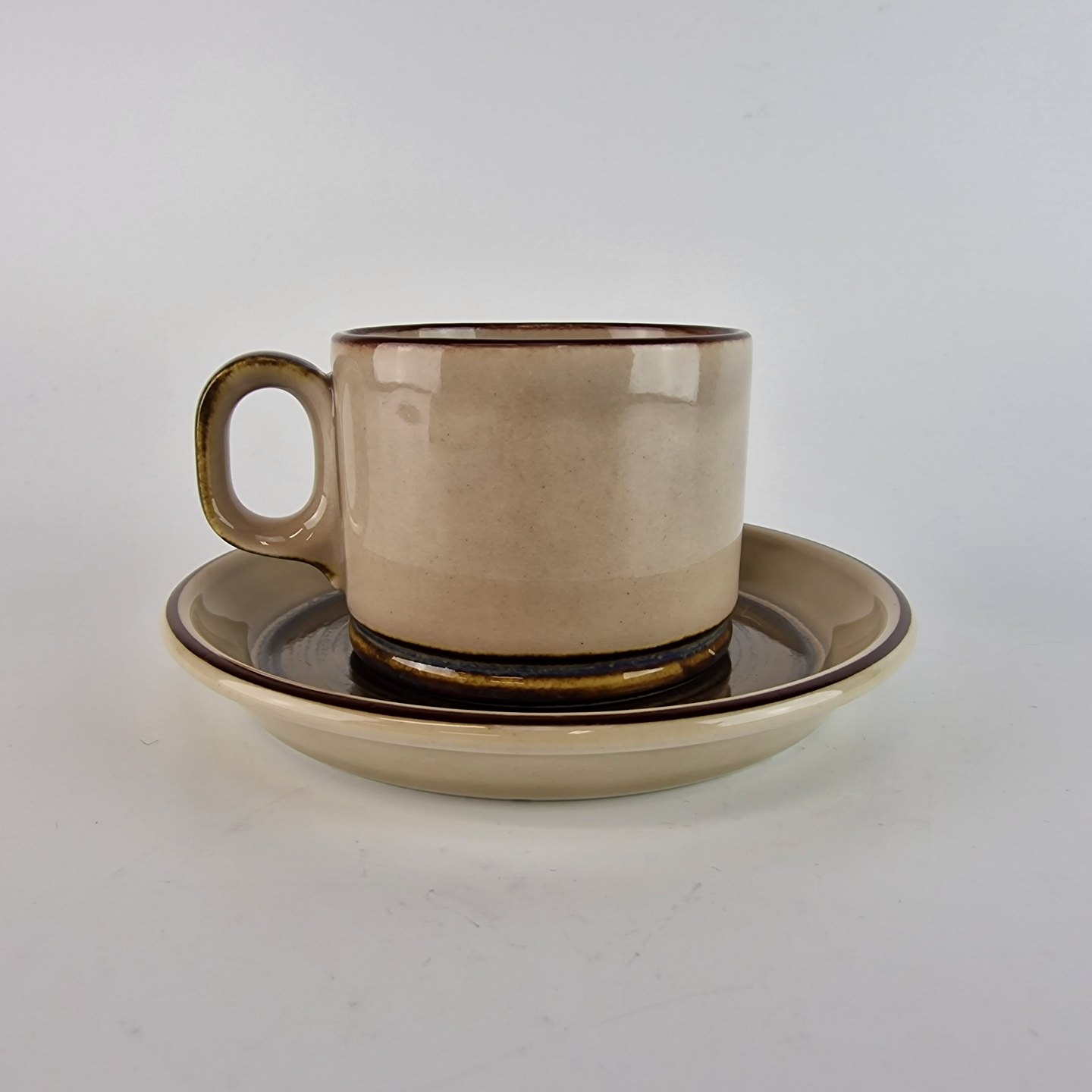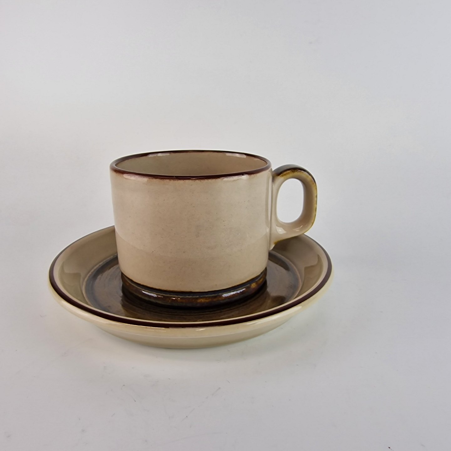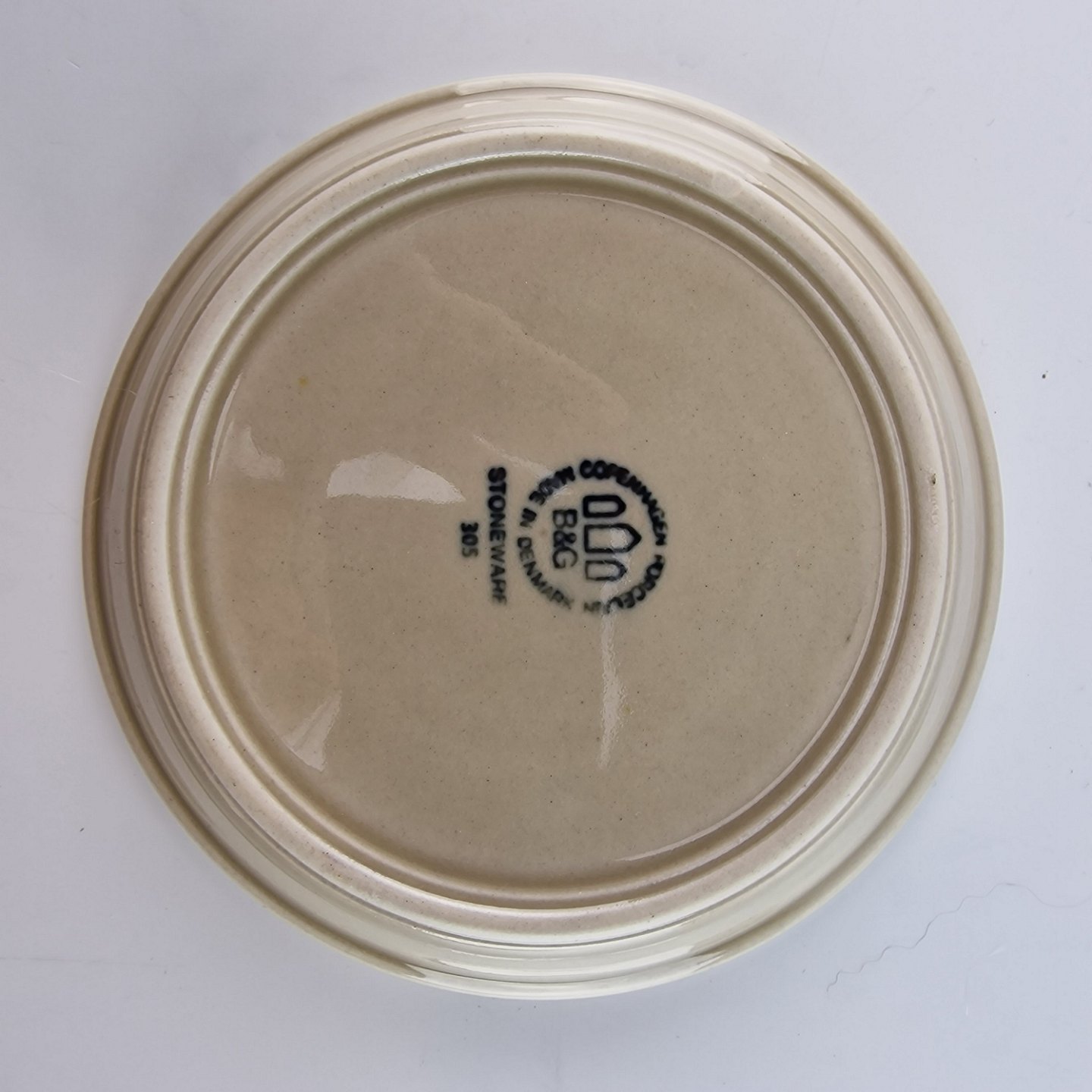 Stellet Peru er af stentøj, glaseret med lys grå farve og dekoreret med bånd af grøn/brunlige farve