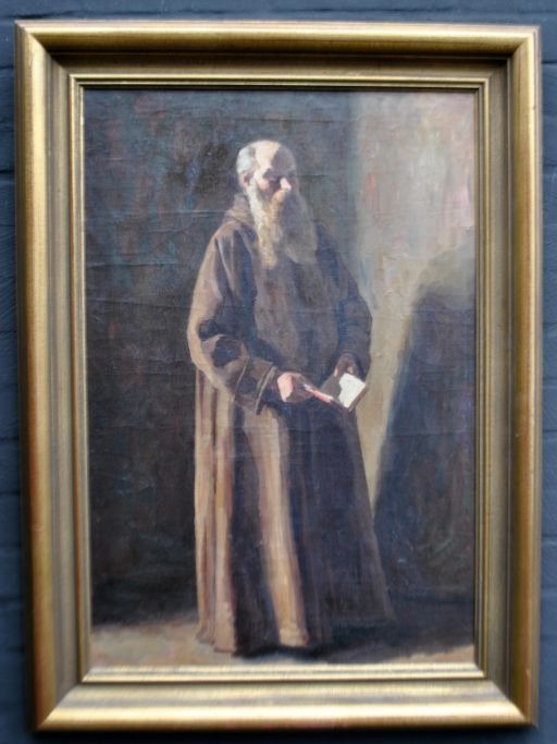 Dansk kunstner (19. årh.): En stående munk. Olie på lærred. Usigneret. 76 x 52 cm.