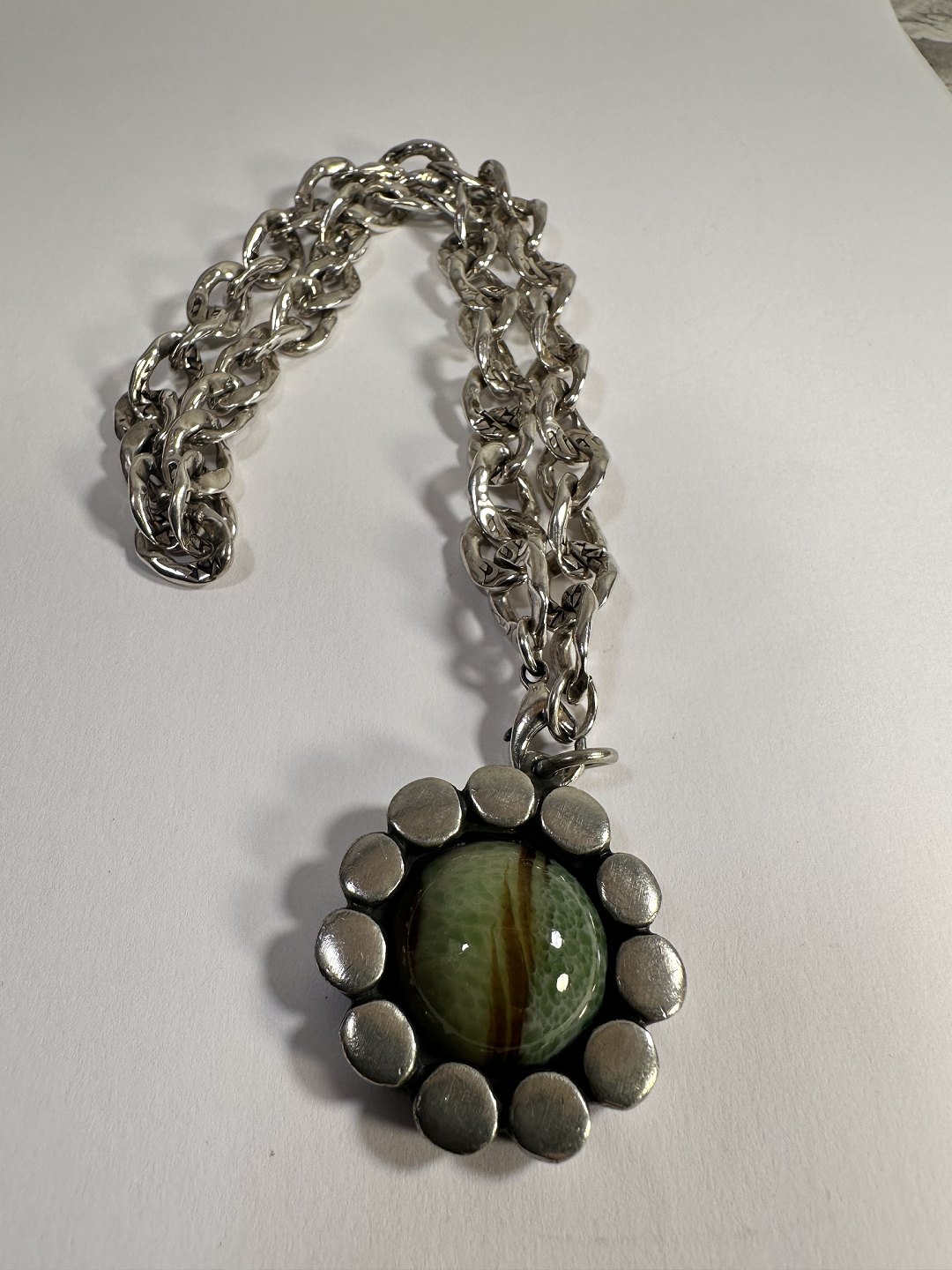 Bent Larsen Tin. Danmark. Vintage Halskæde af tin med Agat sten. nr. 281 Moderne design, 60/70'erne.