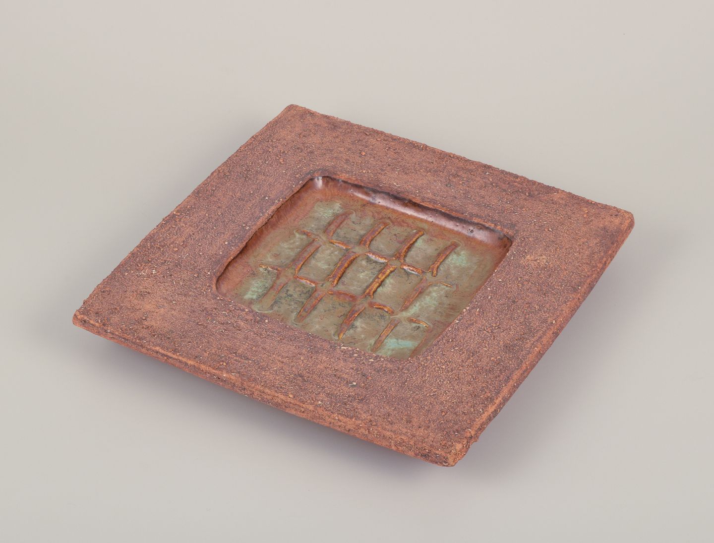 Kvadratisk unika keramikfad i modernistisk stil. Chamotte-ler.