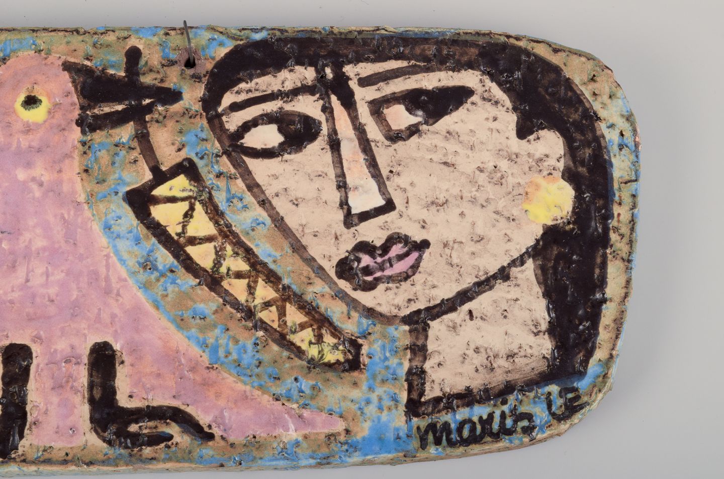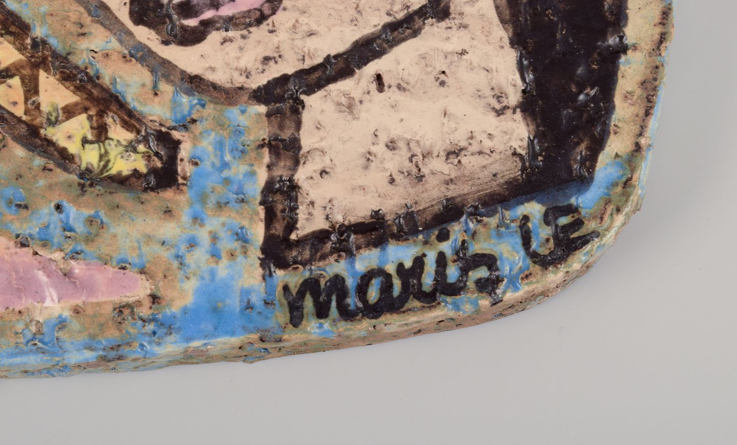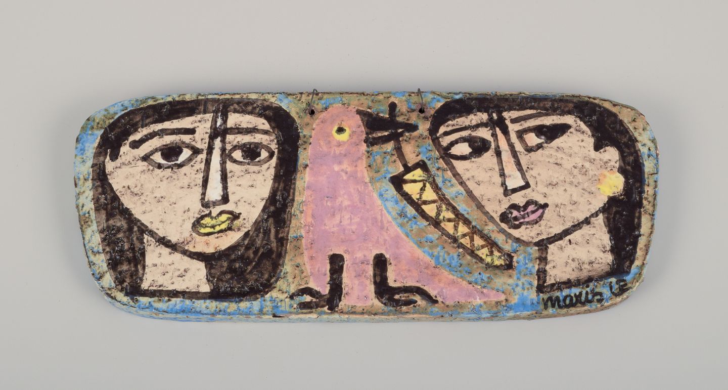 Mari Simmulson (1911-2000) for Upsala Ekeby, Sverige. Sjældent vægrelief i håndmalet keramik.