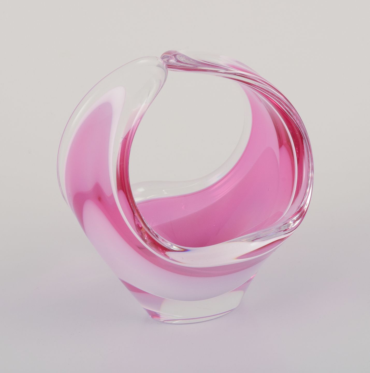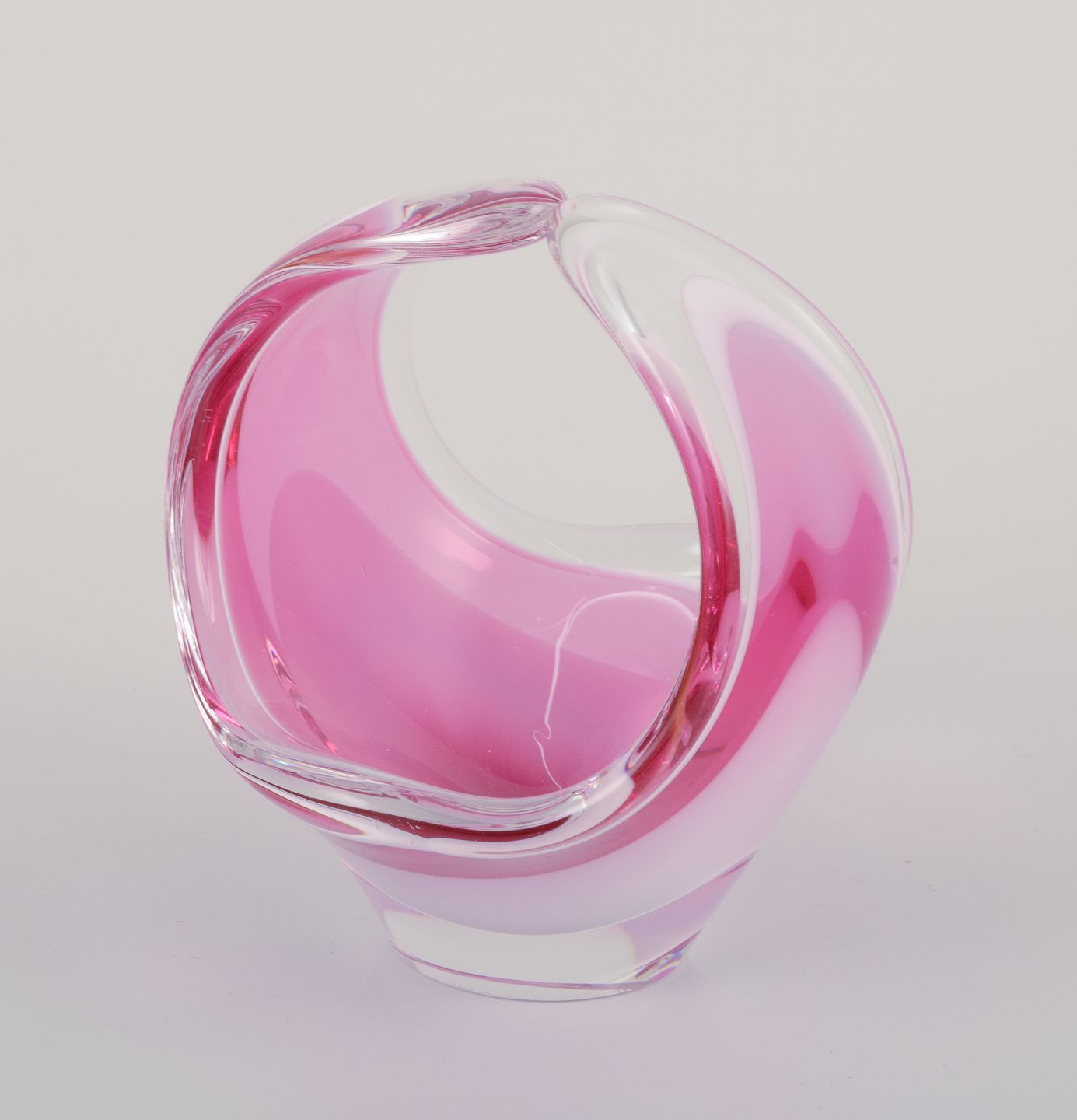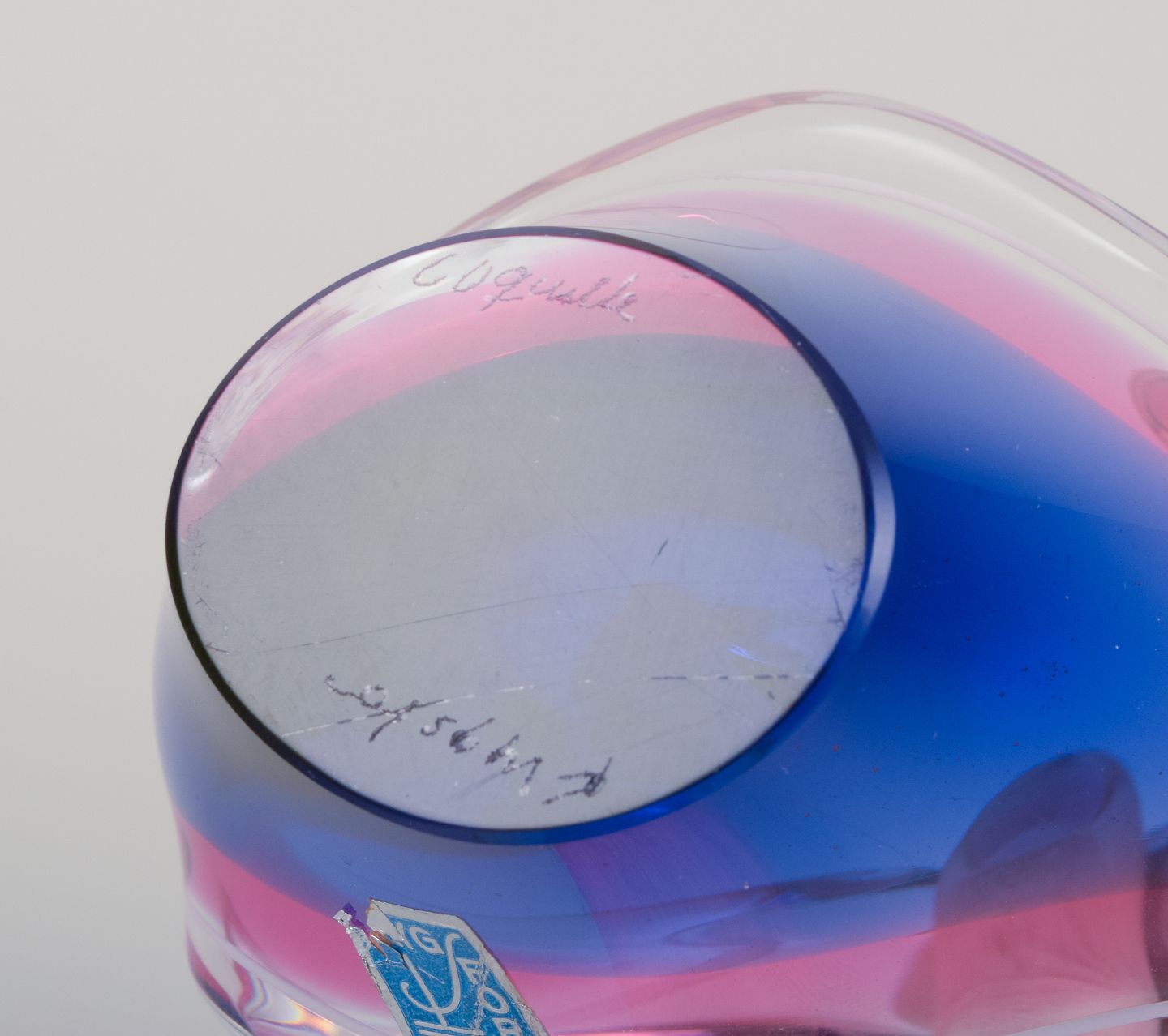 Paul Kedelv for Flygsfors, Sverige. To "Coquille Fantasia" kunstglasvaser. I lyserødt, lilla og klart glas. Håndlavet.
