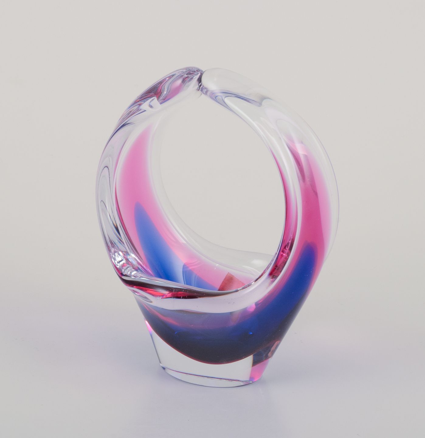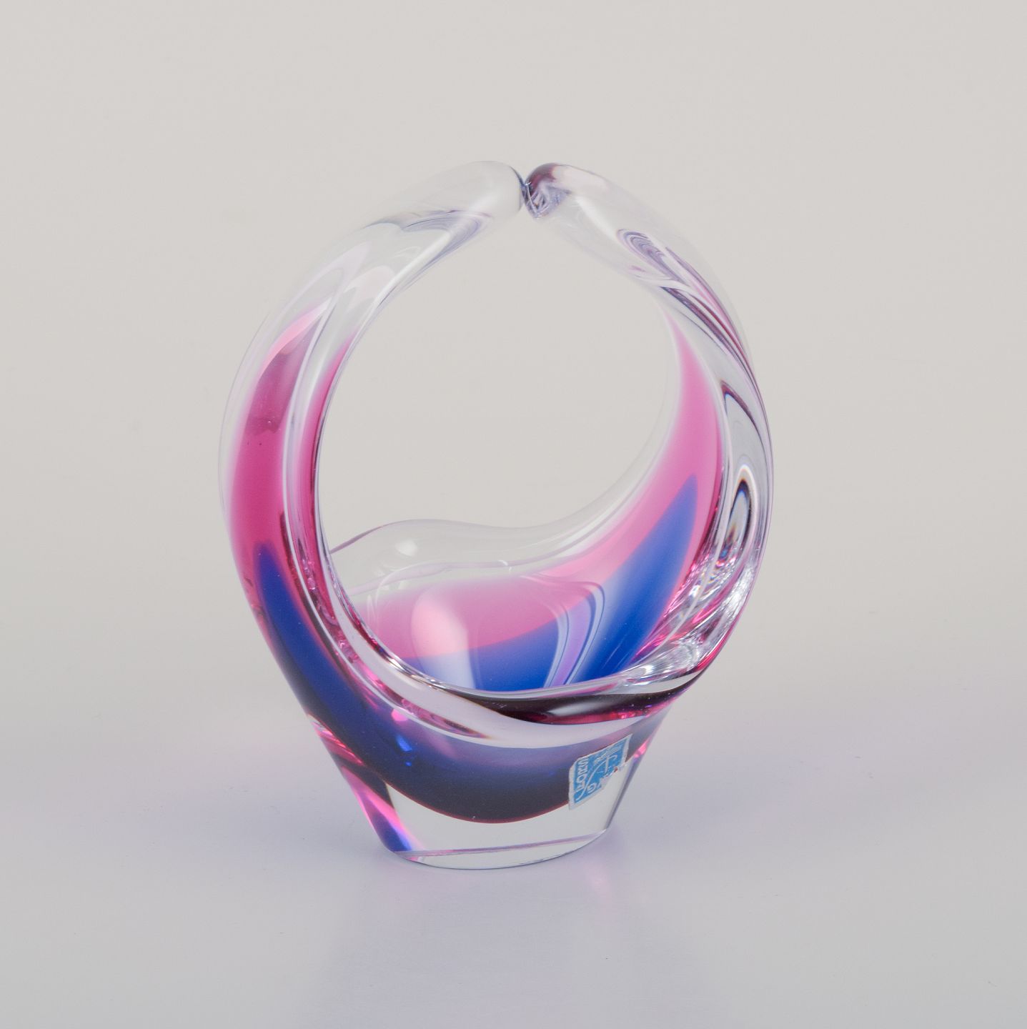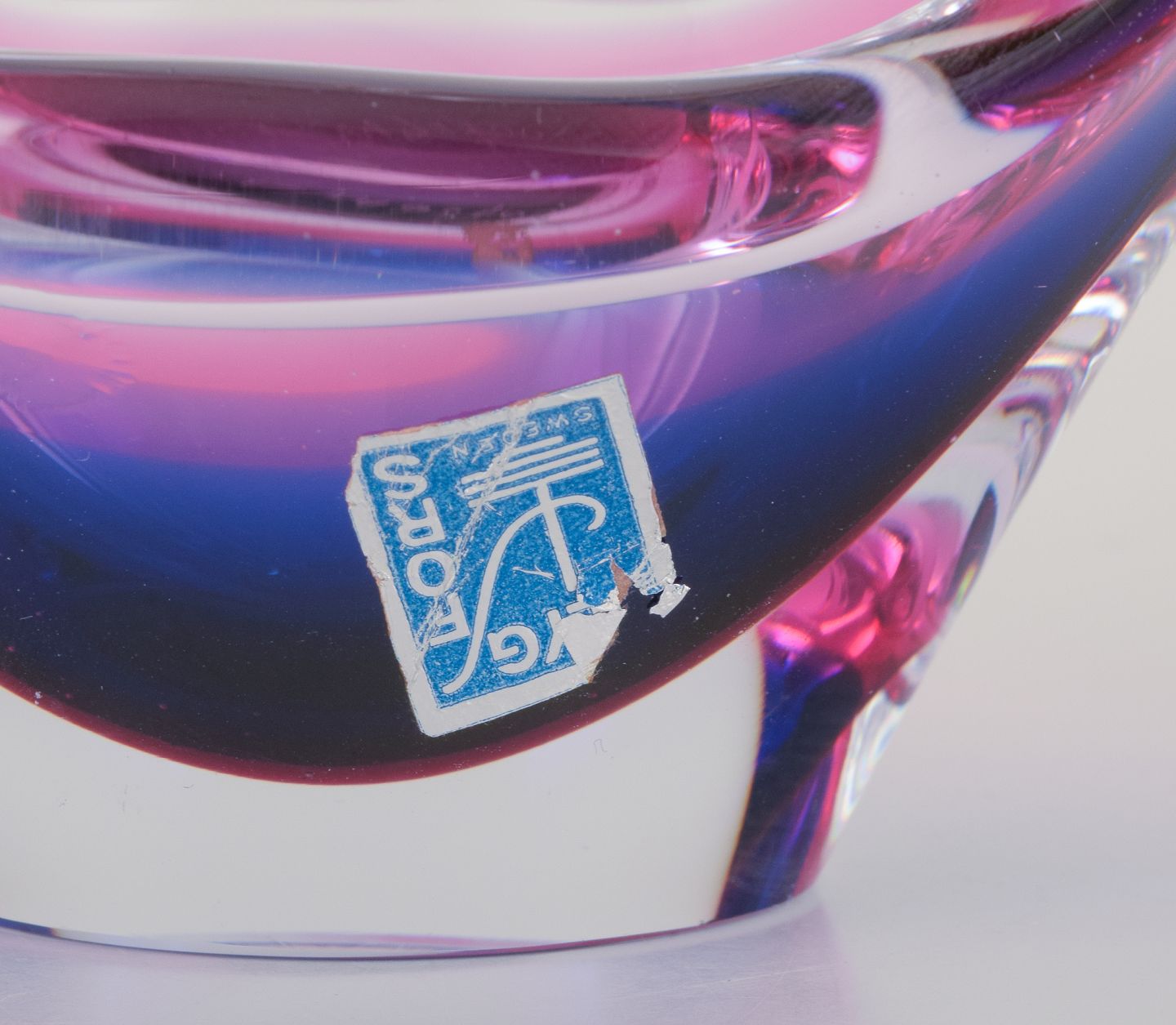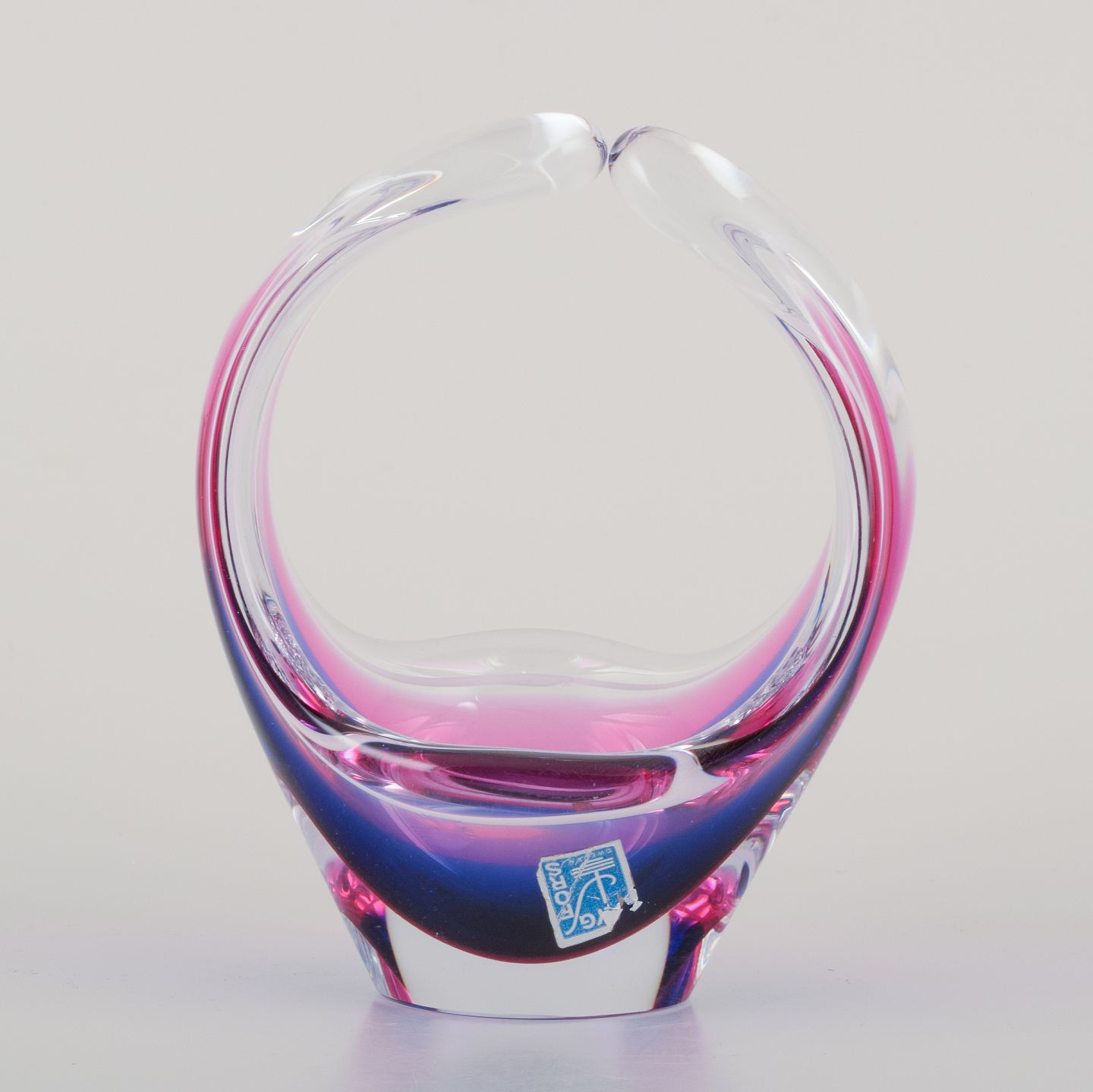Paul Kedelv for Flygsfors, Sverige. To "Coquille Fantasia" kunstglasvaser. I lyserødt, lilla og klart glas. Håndlavet.