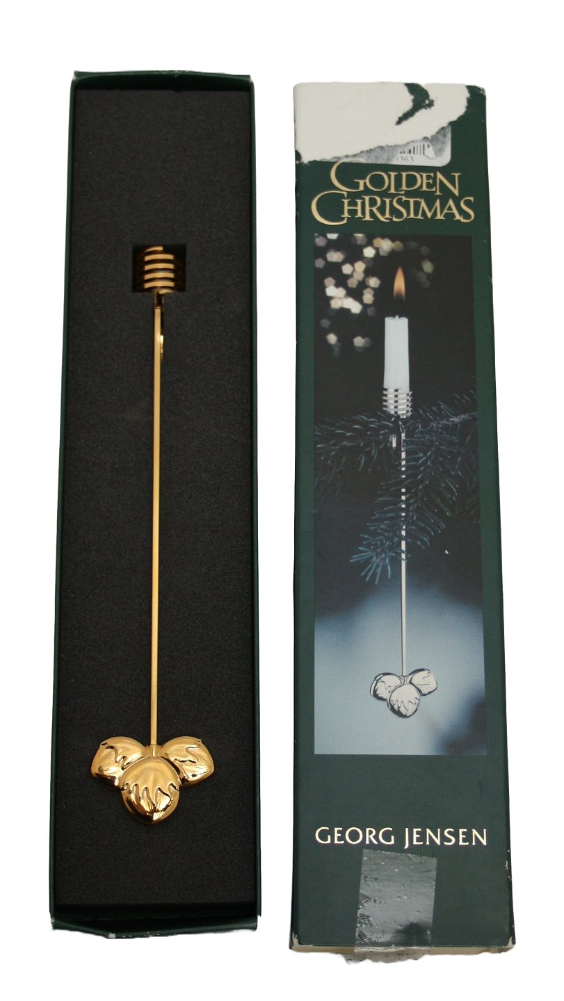 Georg Jensen, Golden Christmas, Lyseholder forgyldt. Design Andreas Mikkelsen. 2002 Hasselnød. Med originalæske. Pris: 150 kr. pr. stk. Lager: 1