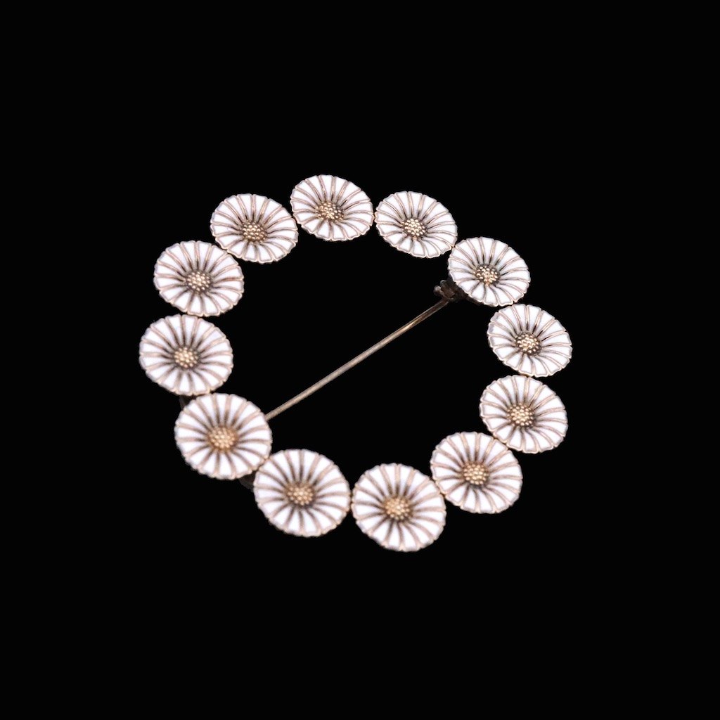 A. Michelsen. Gilded Silver Daisy Brooch with Enamel.