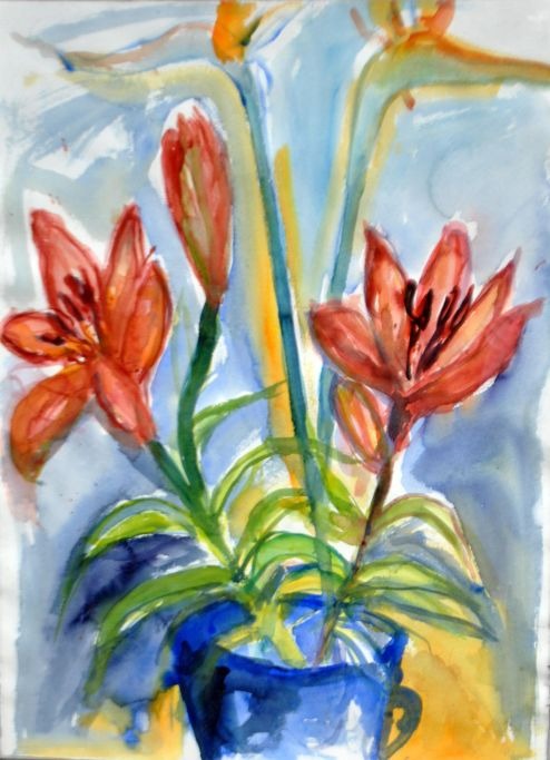 Degett, Karen (1954 - 2011) Danmark: Blomsteropstilling. Usigneret. Akvarel på papir. 76 x 68 cm.