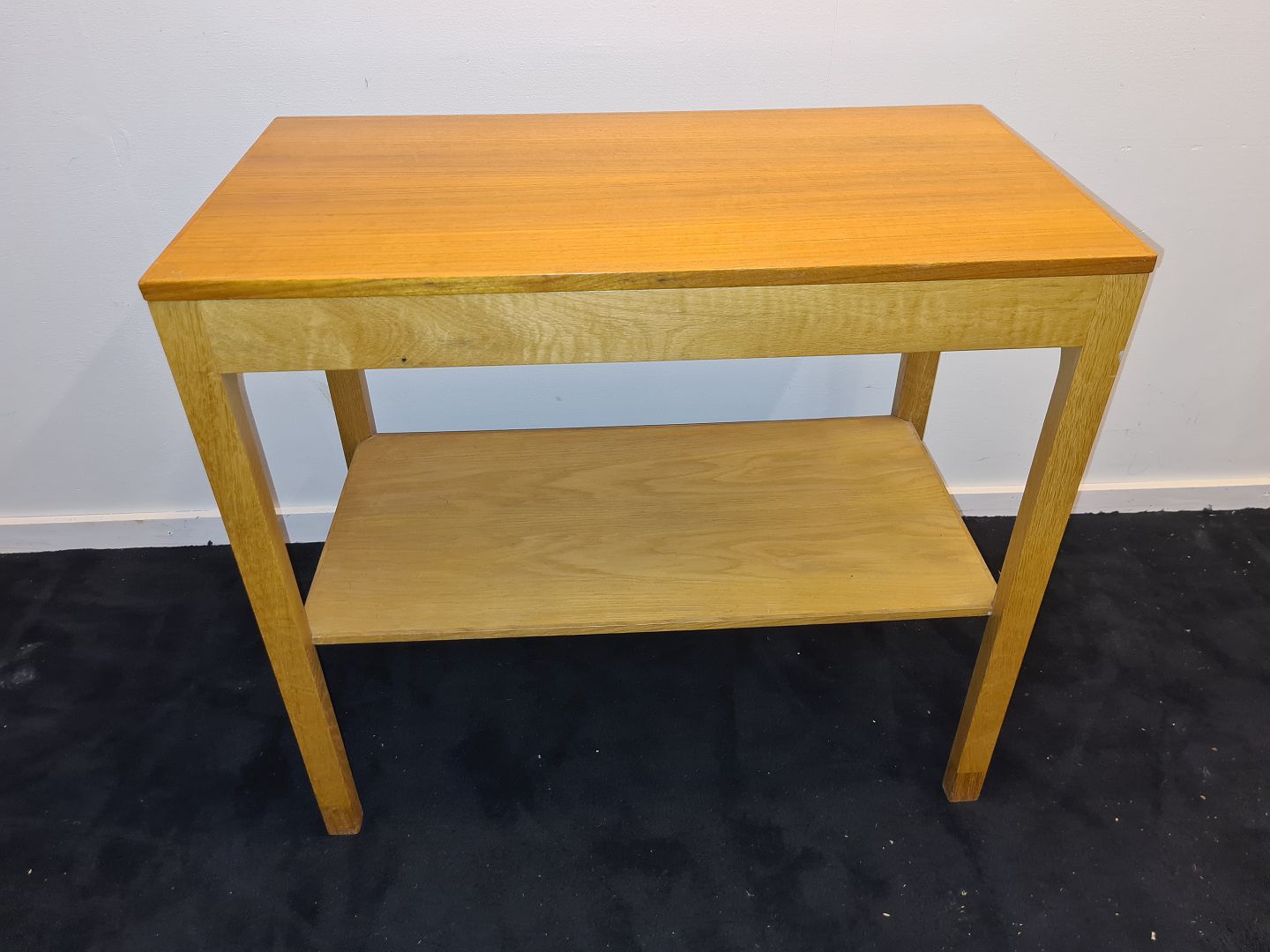 Anretterbord i teak og eg fra SKM møbler. Fremstår pænt og velholdt uden nævneværdige brugsspor.