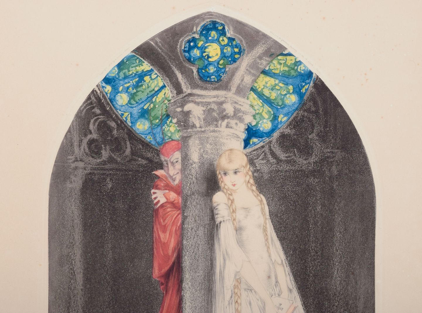 Louis Icart (1888-1950). Art Deco farvelitografi på japanpapir.