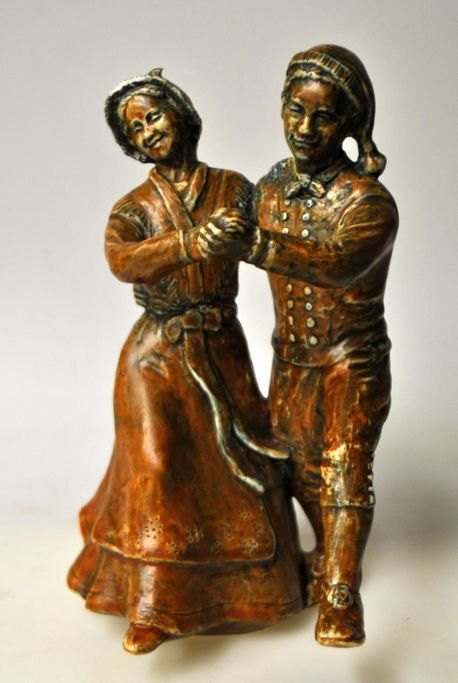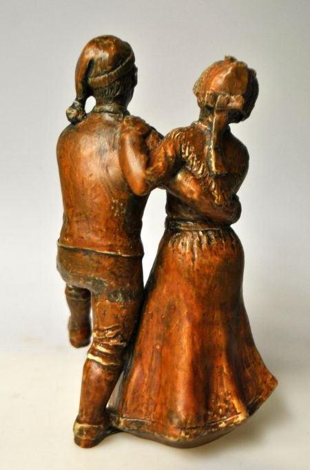 Carlsen, Poul Hauch (1921 - 2006) Denmark. A couple dancing in folk costume. Glazed porcelain. Signed: Monogram. H.: 22 cm.