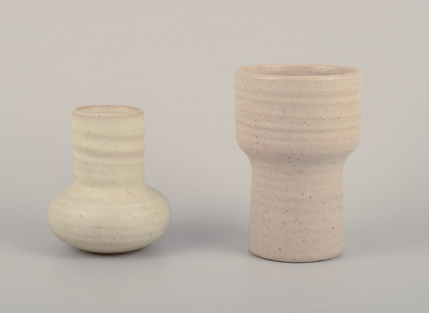 Mobach, Holland, to unikavaser i glaseret keramik. Glasur i lyse toner.