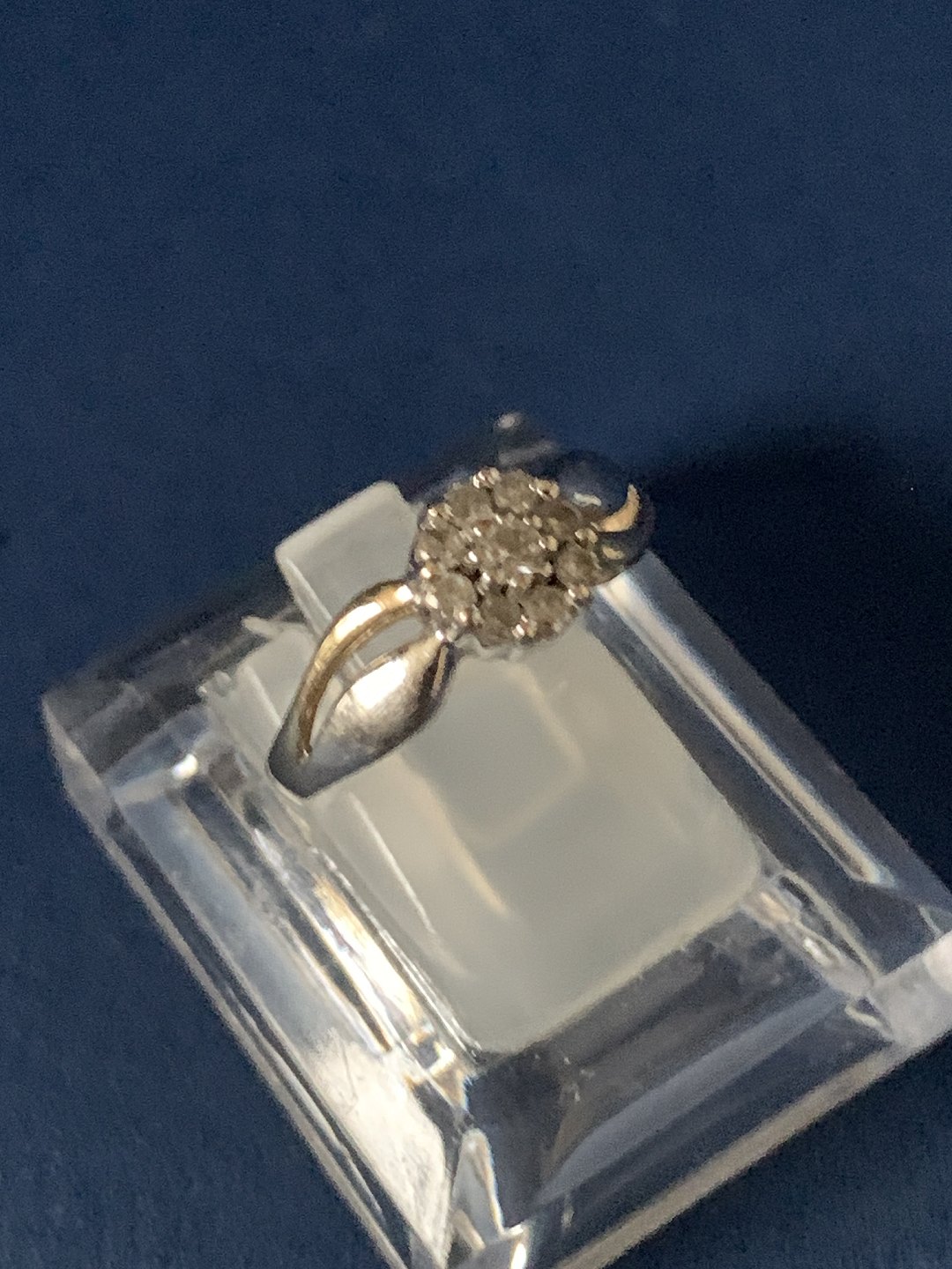 Damering i 10 karat rød- og hvidguld, samt brillanter. Stemplet 10 K. Størrelse 55