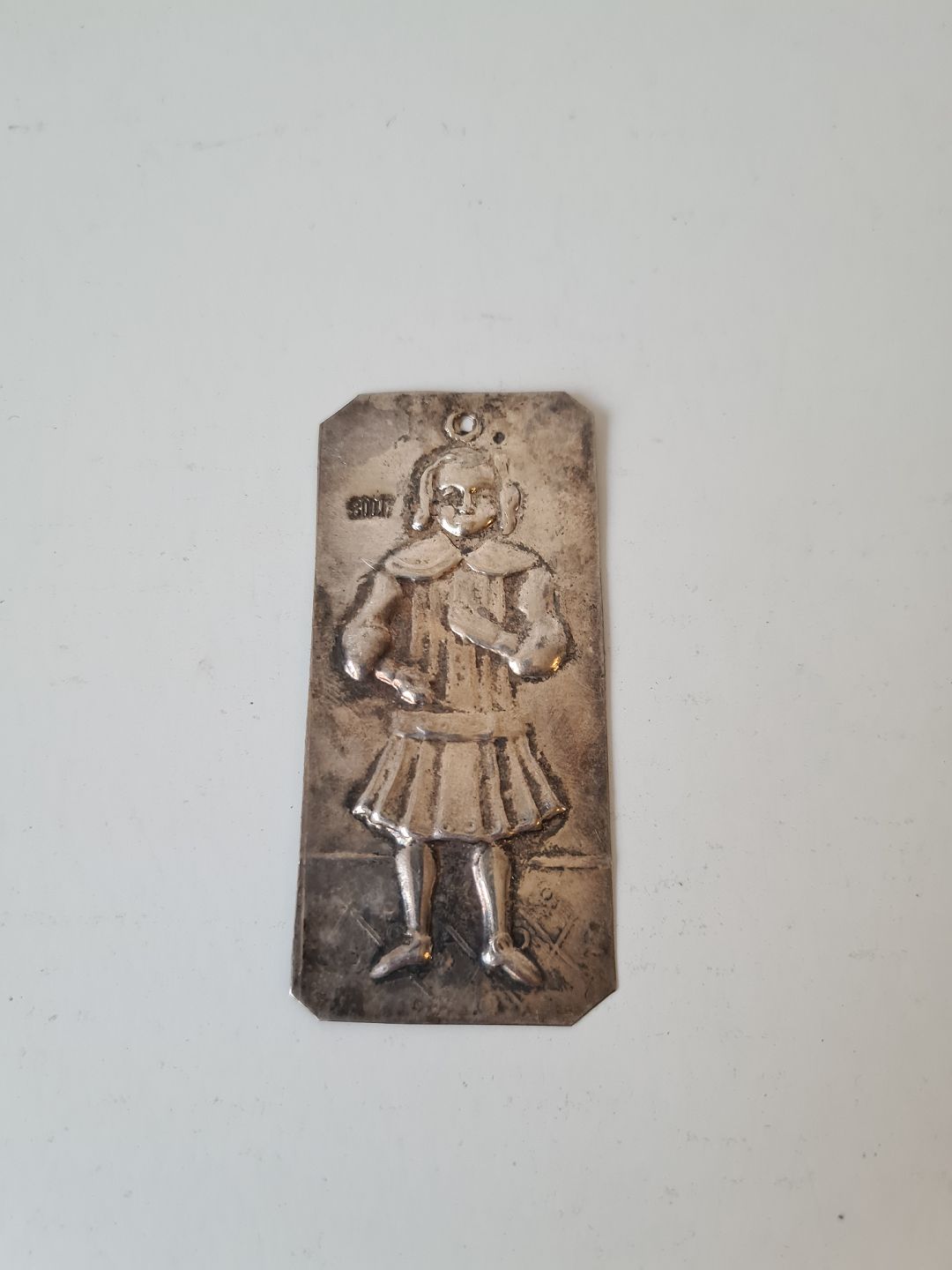 Votiv i sølv med motiv af en pige