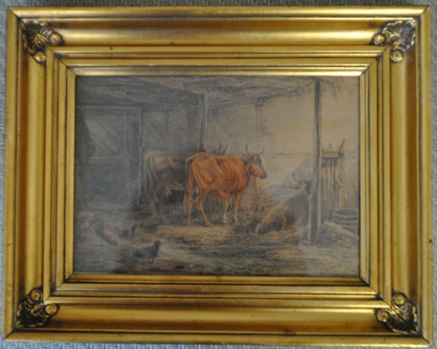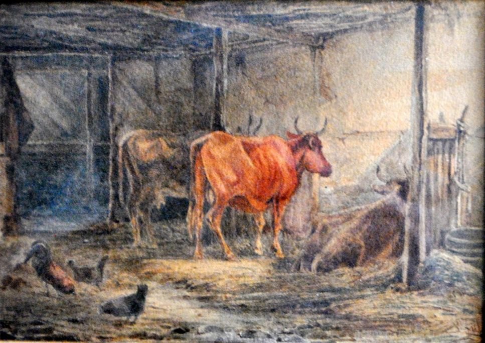 Zillen, Johan Wilhelm (1824 - 1870) Danmark: Fra en kostald. Akvarel. Signeret 1856. 13,5 x 18,5 cm.