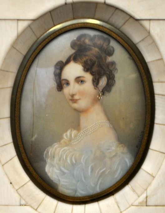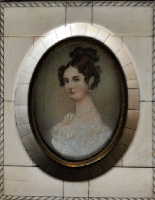 Fransk miniature maleri af ung kvinde, 19. årh.